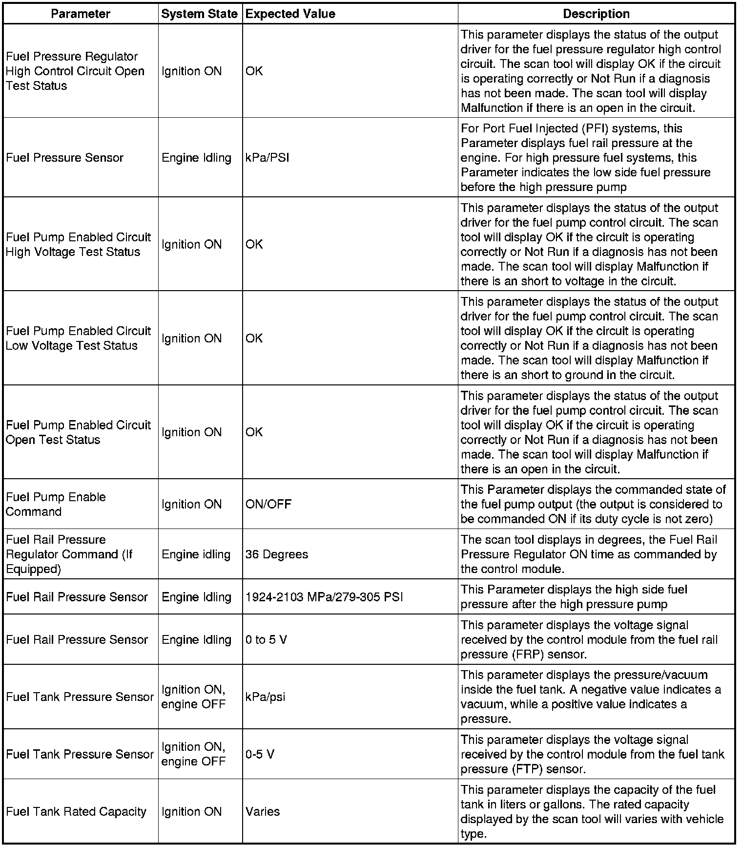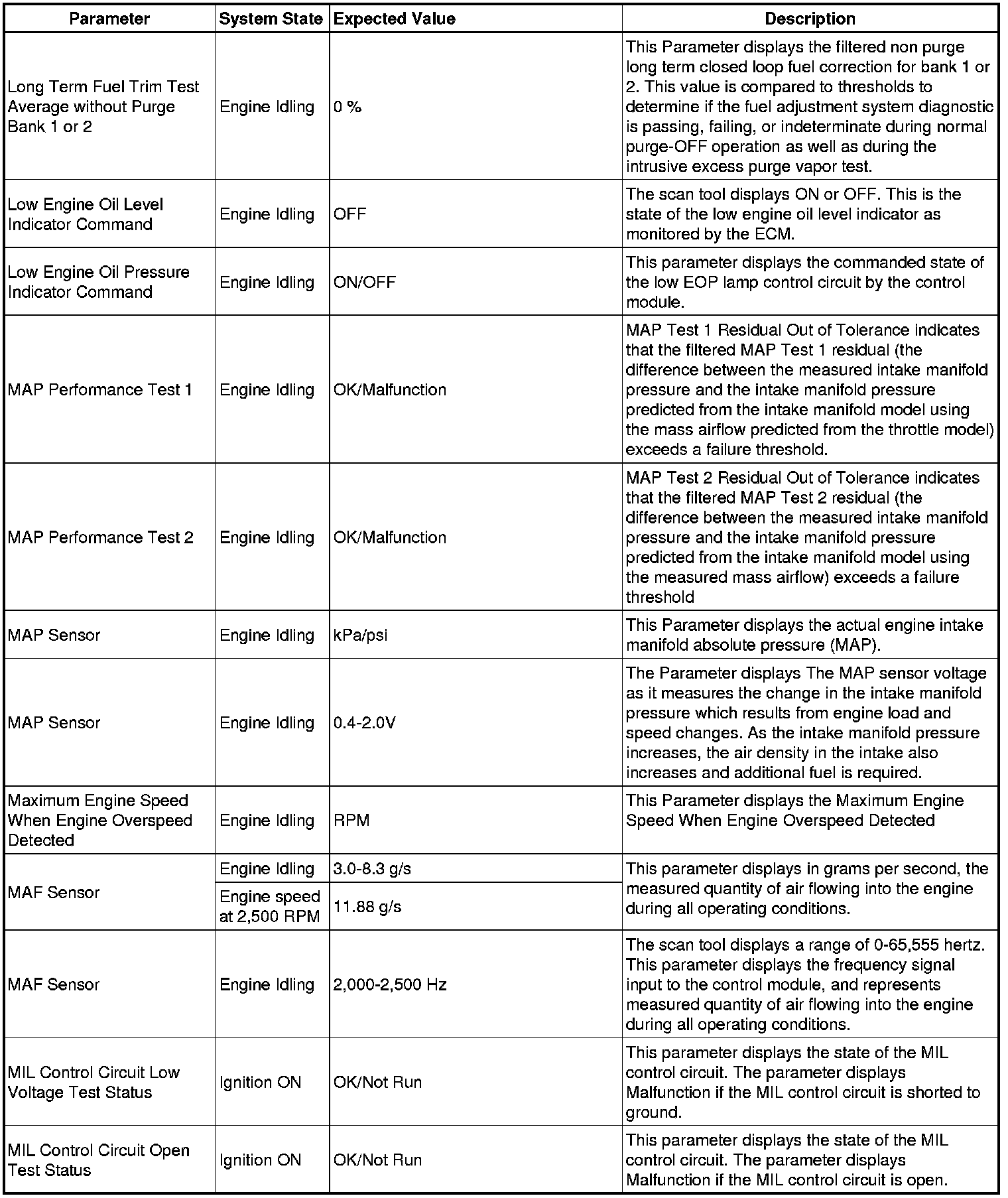 The scan tool values from a properly running engine may be used for comparison with the engine you are diagnosing. The Engine Scan Tool Data List represents values that would be seen on a normally running engine.