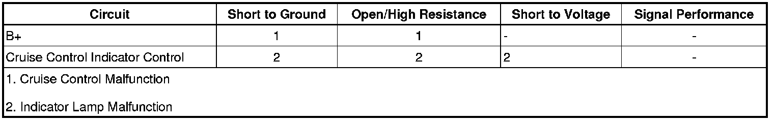 If the parameter does not change, refer to Cruise Control Malfunction Cruise Control Malfunction.