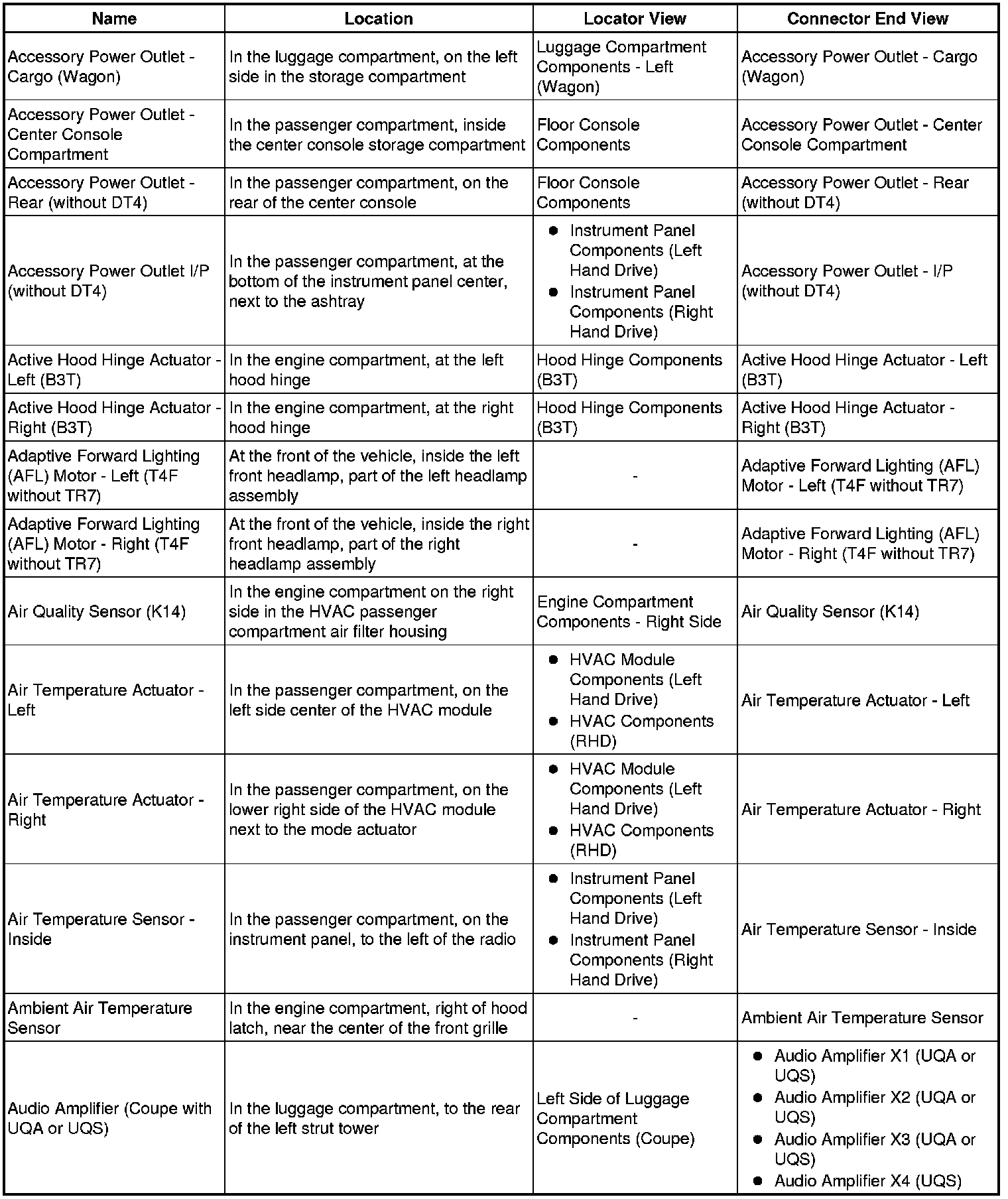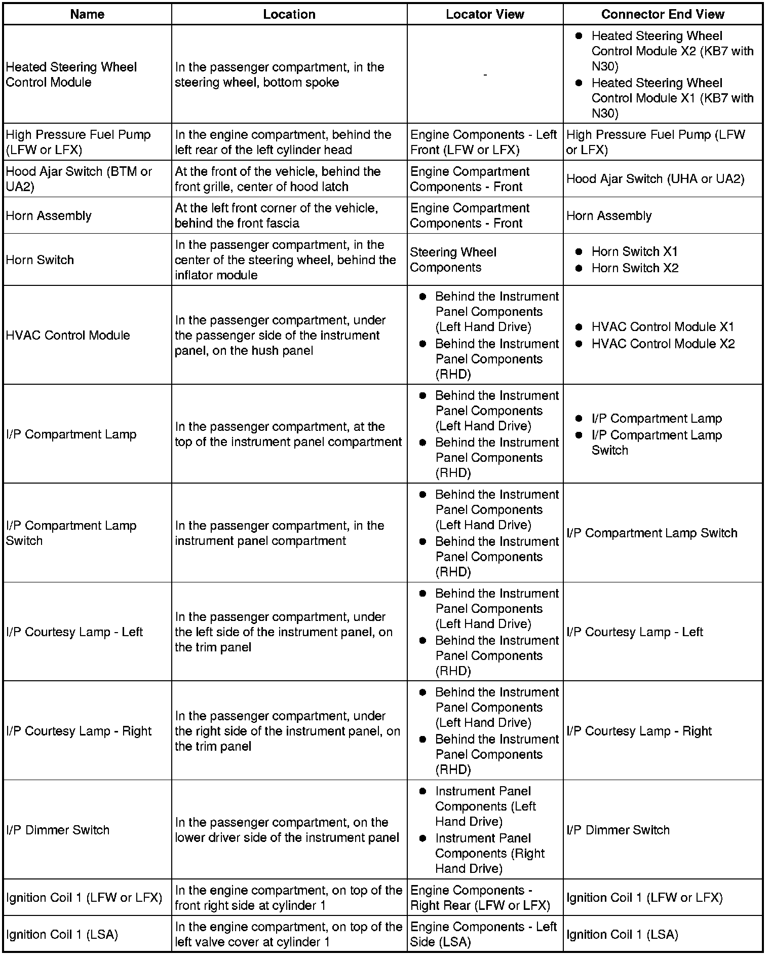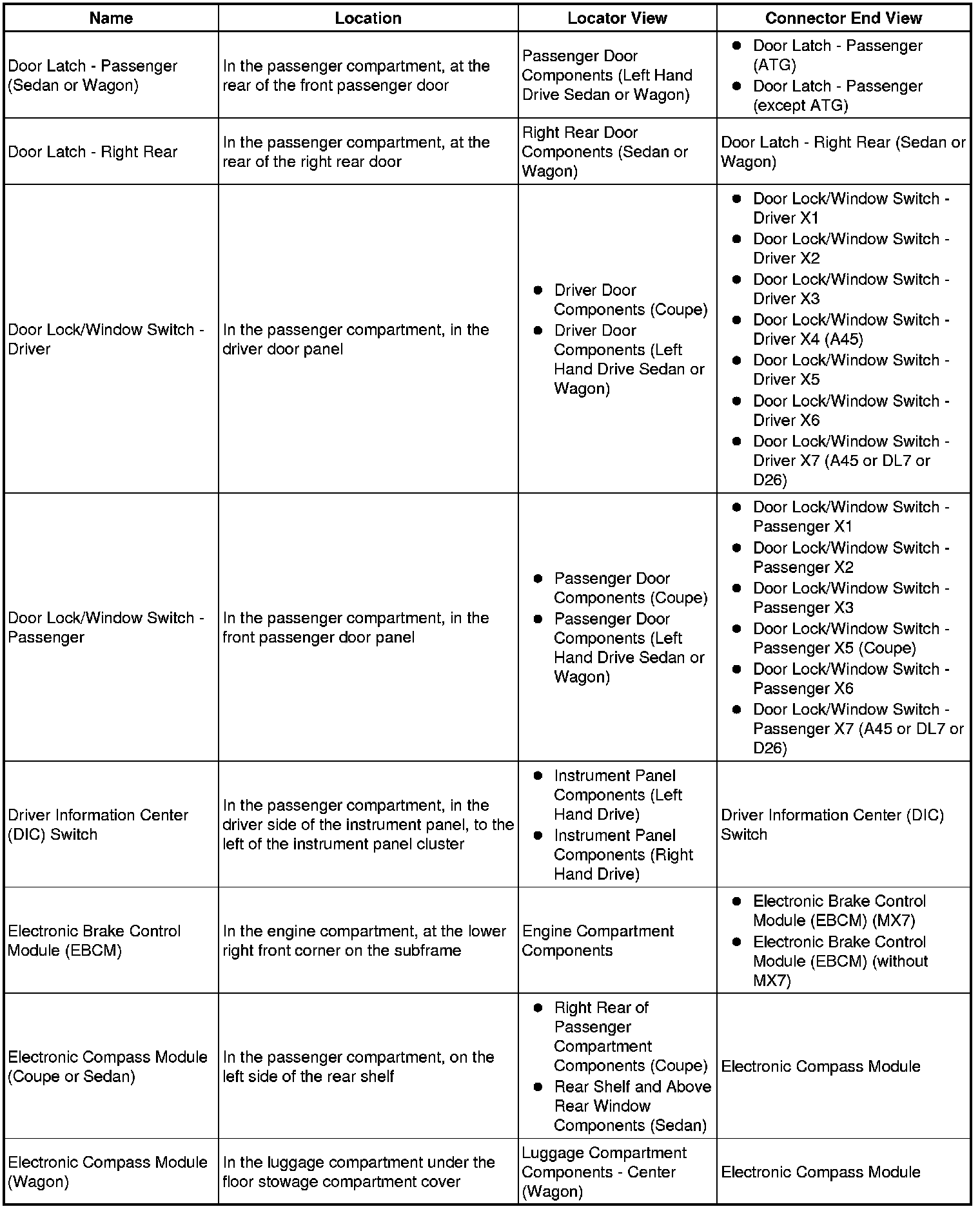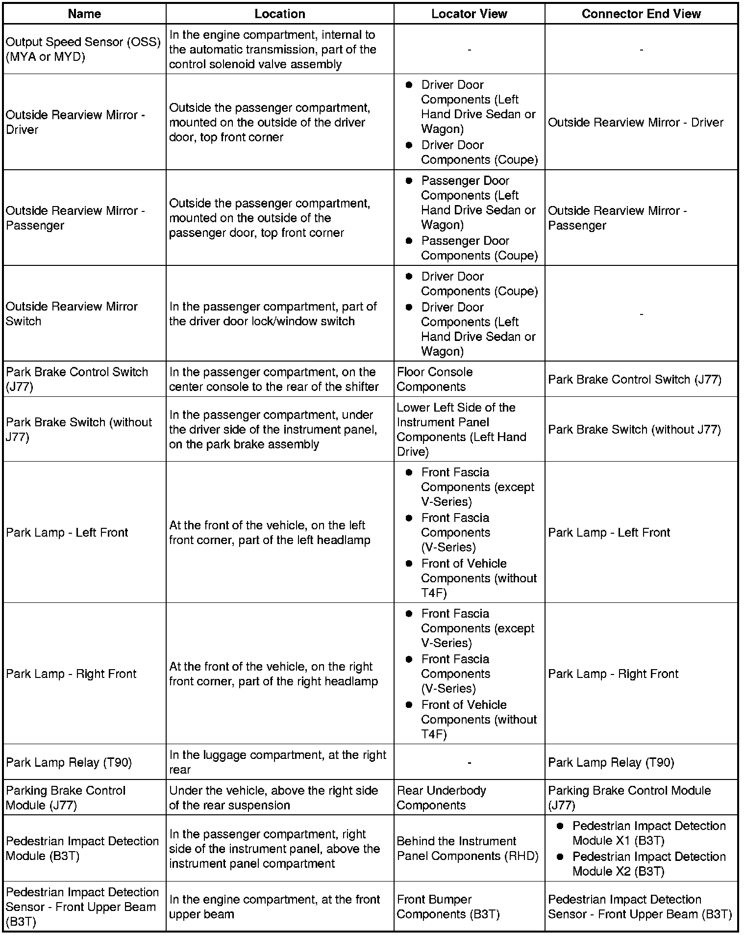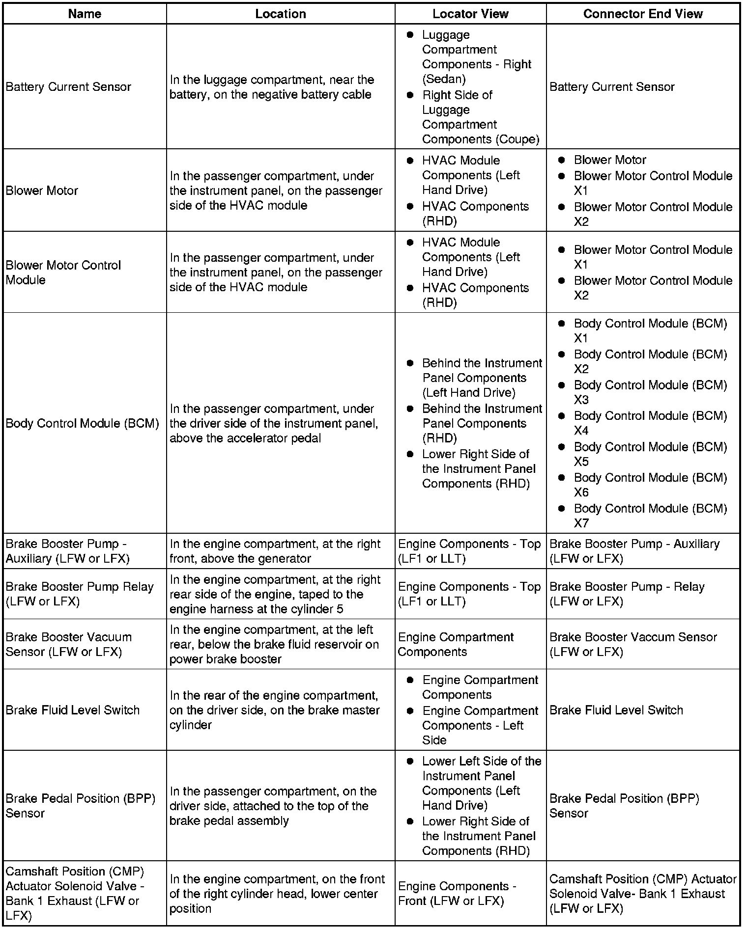 Master Electrical Component List
