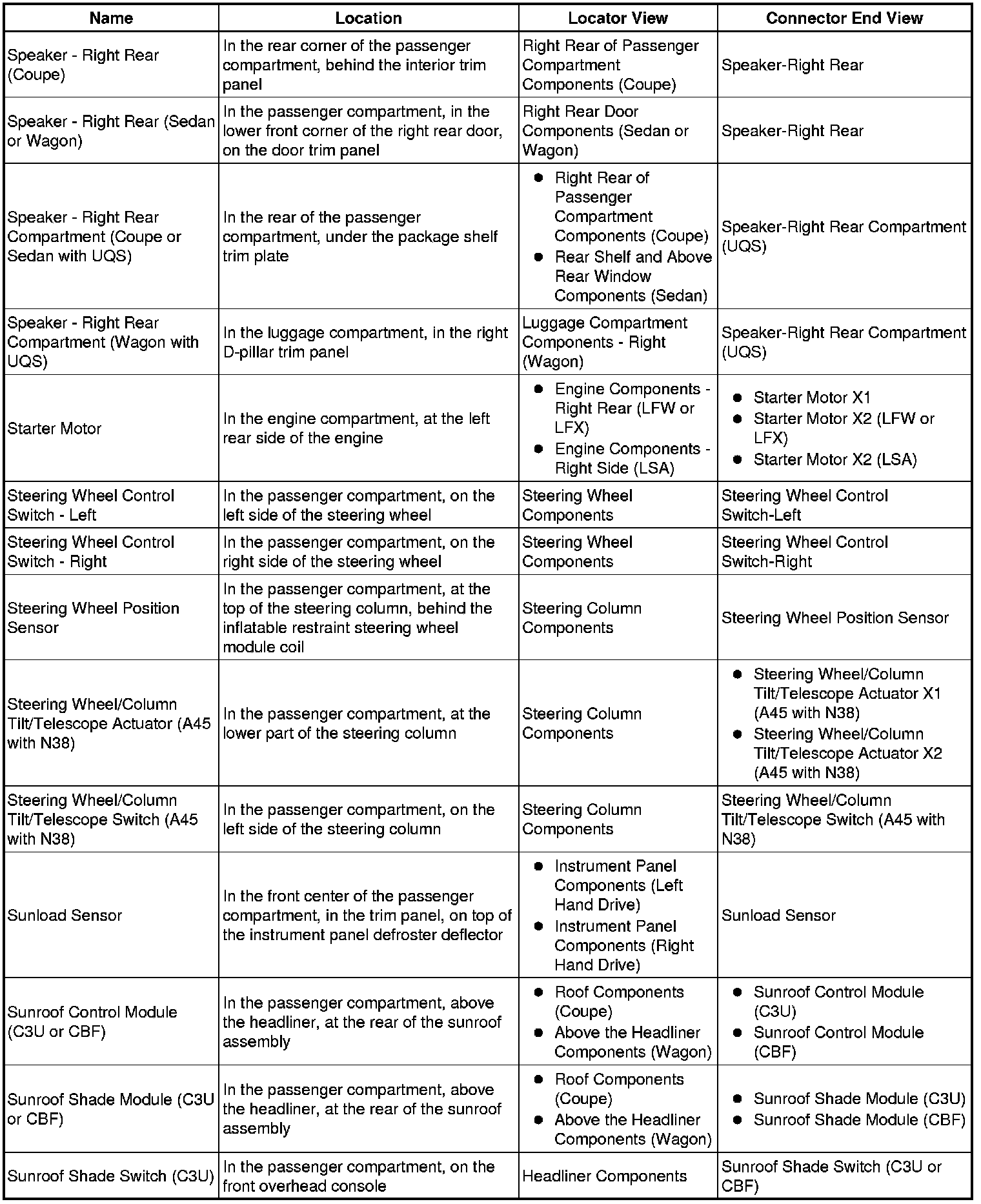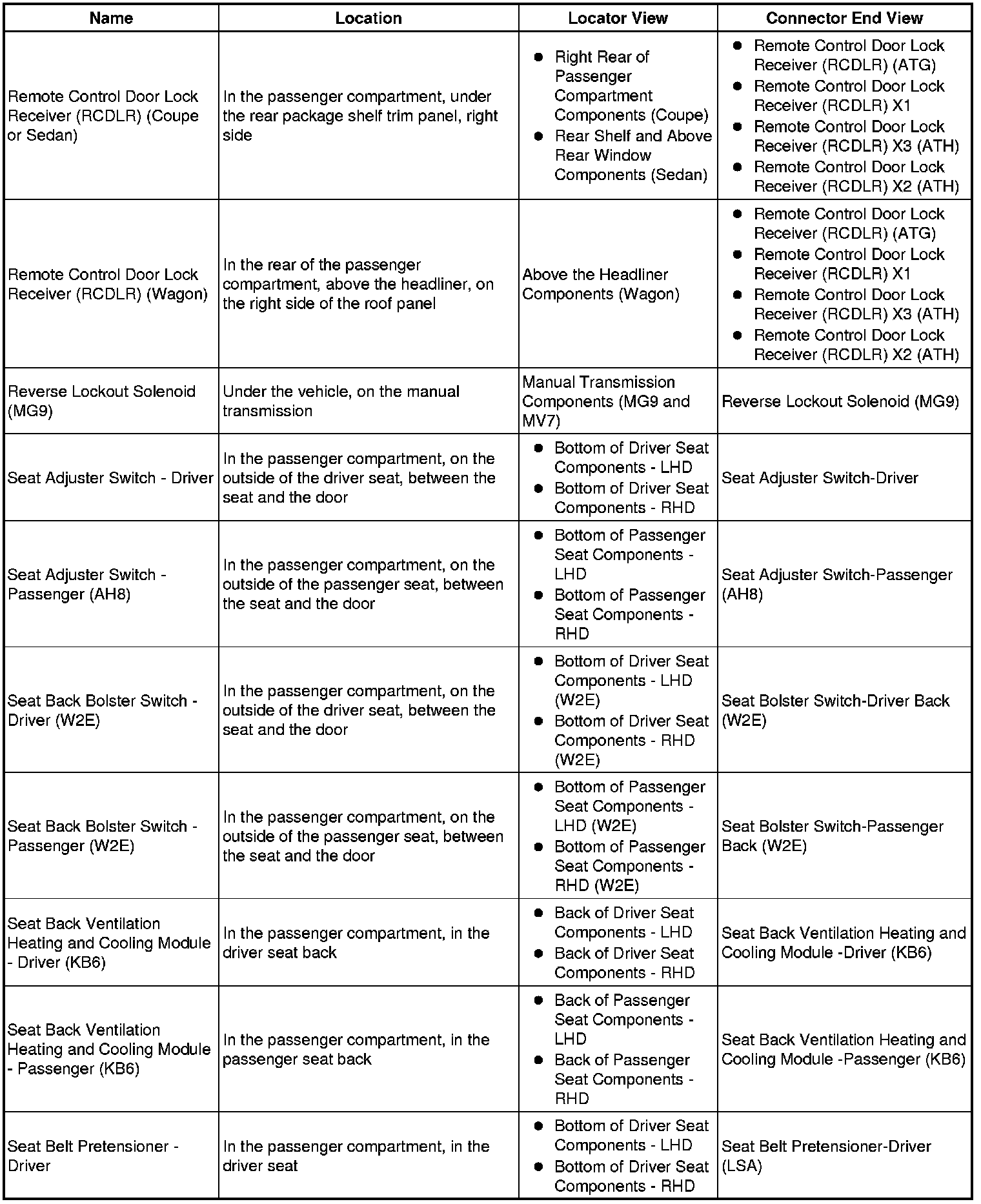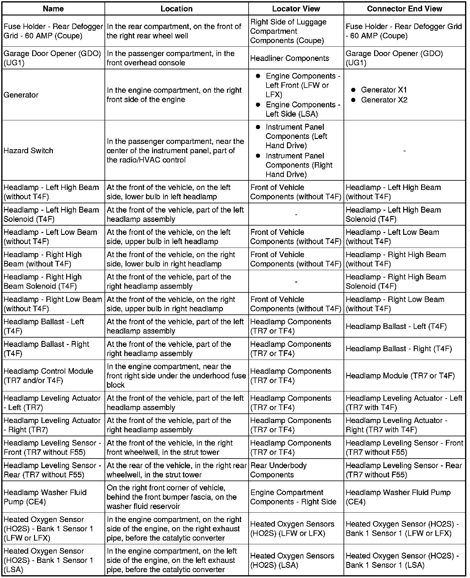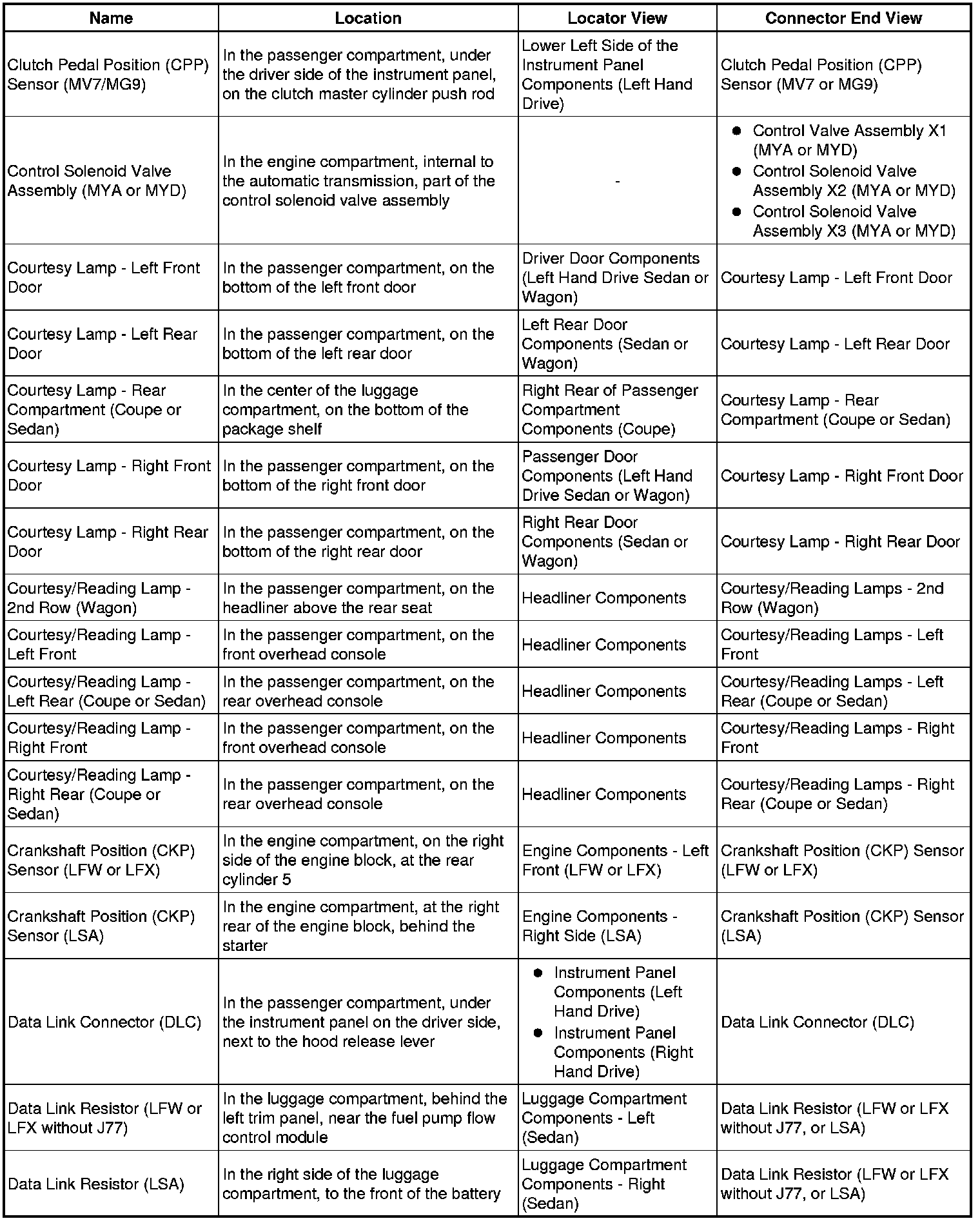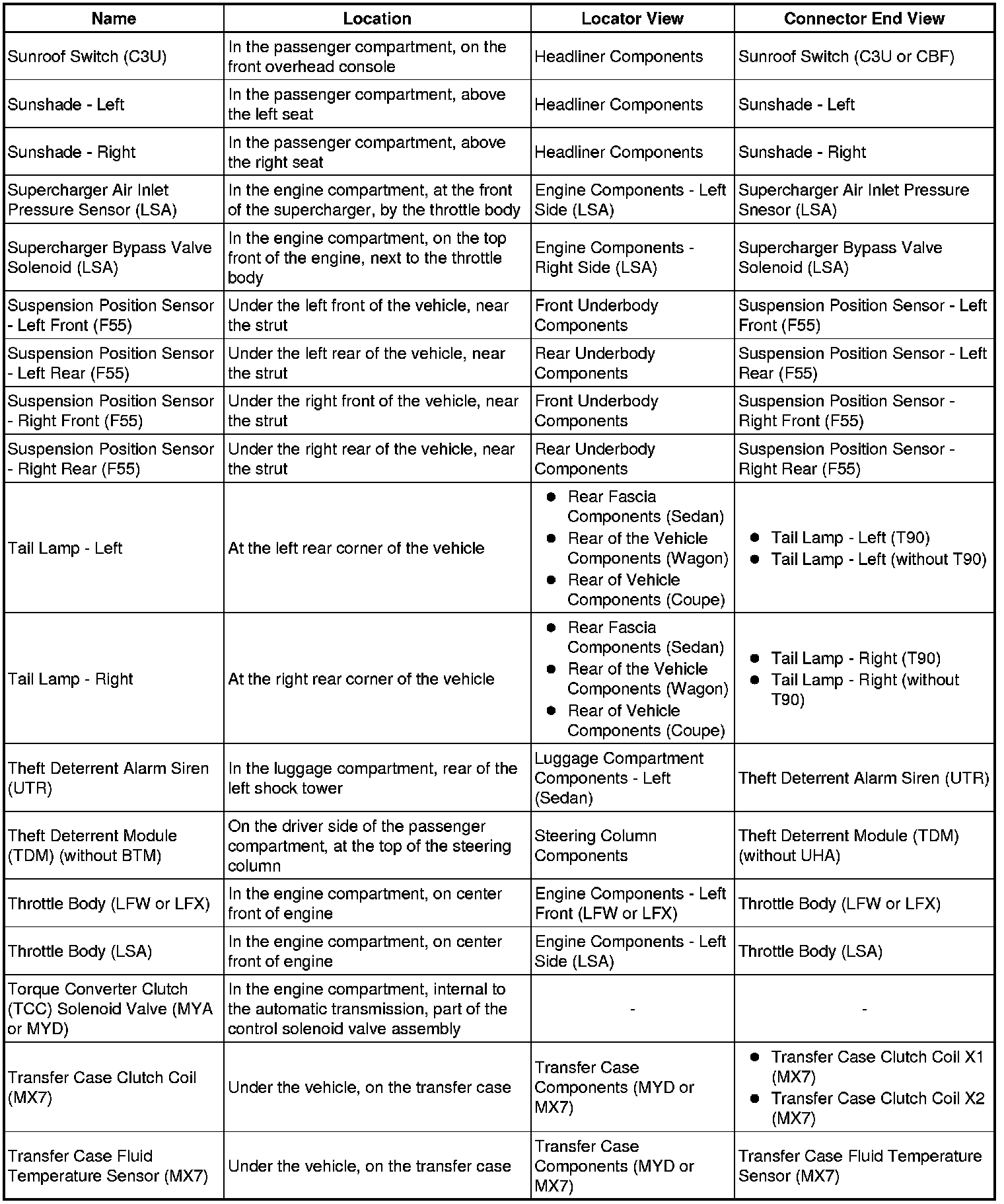 Master Electrical Component List