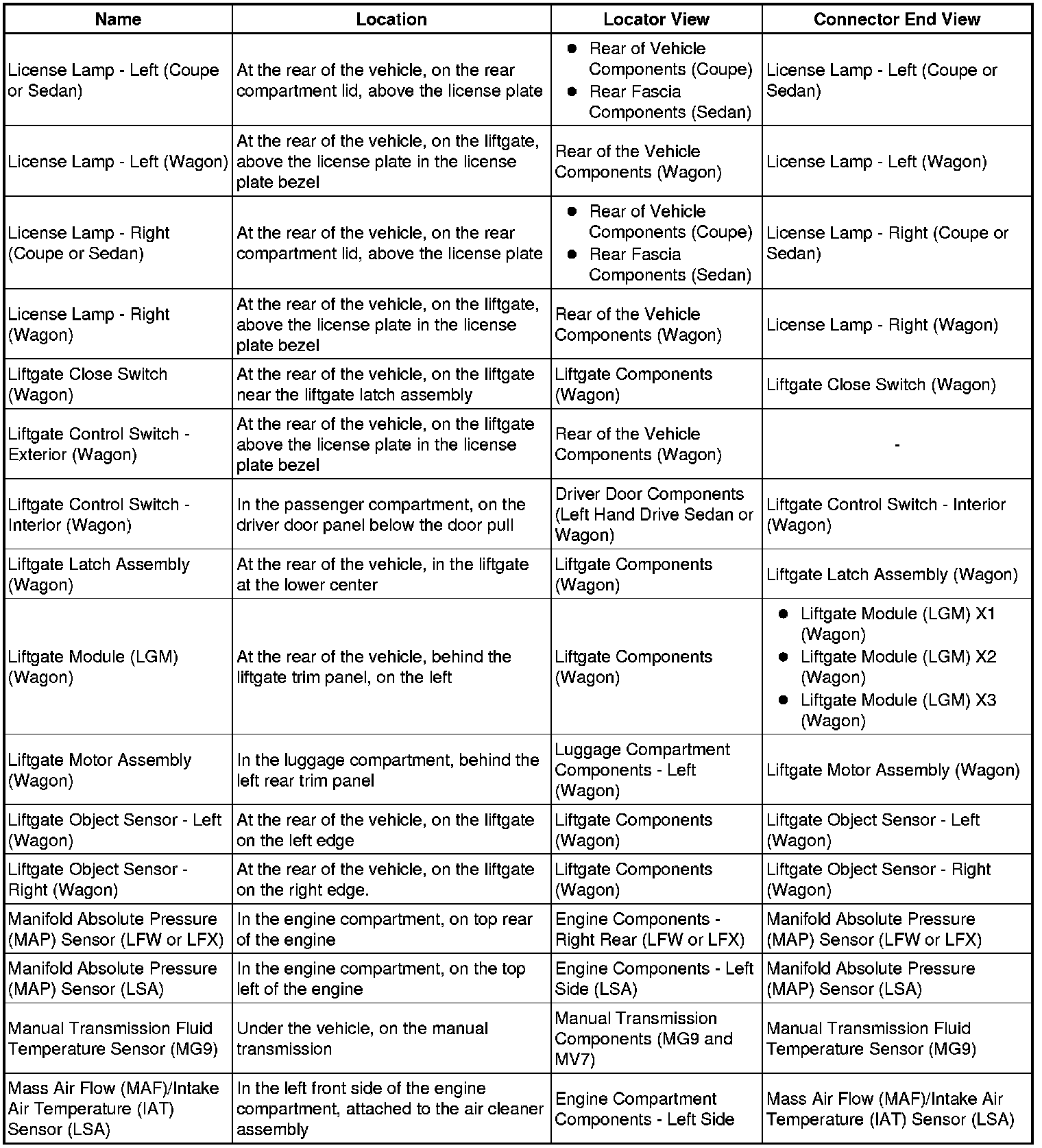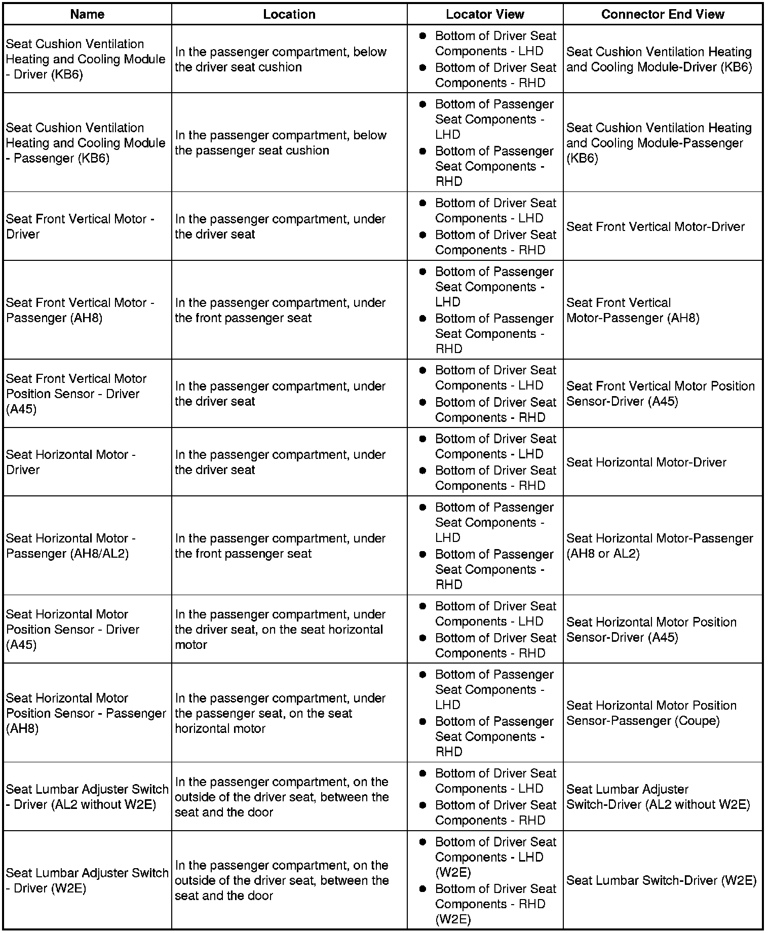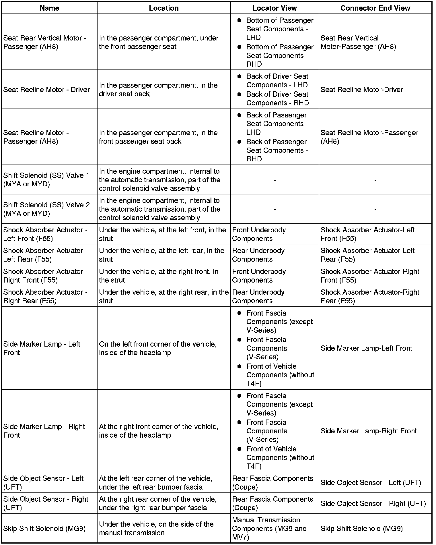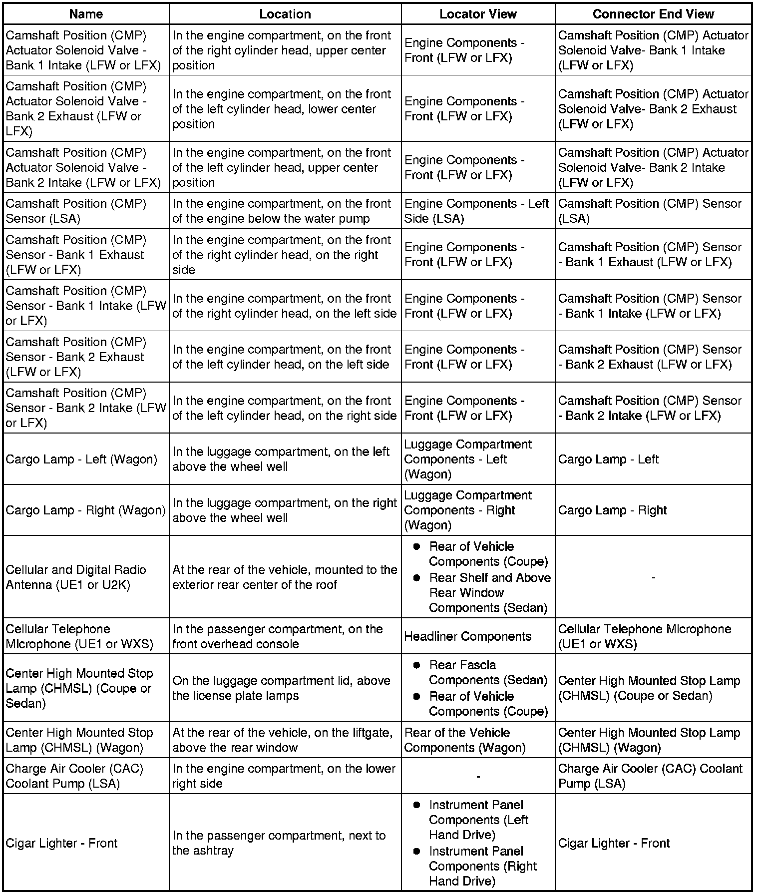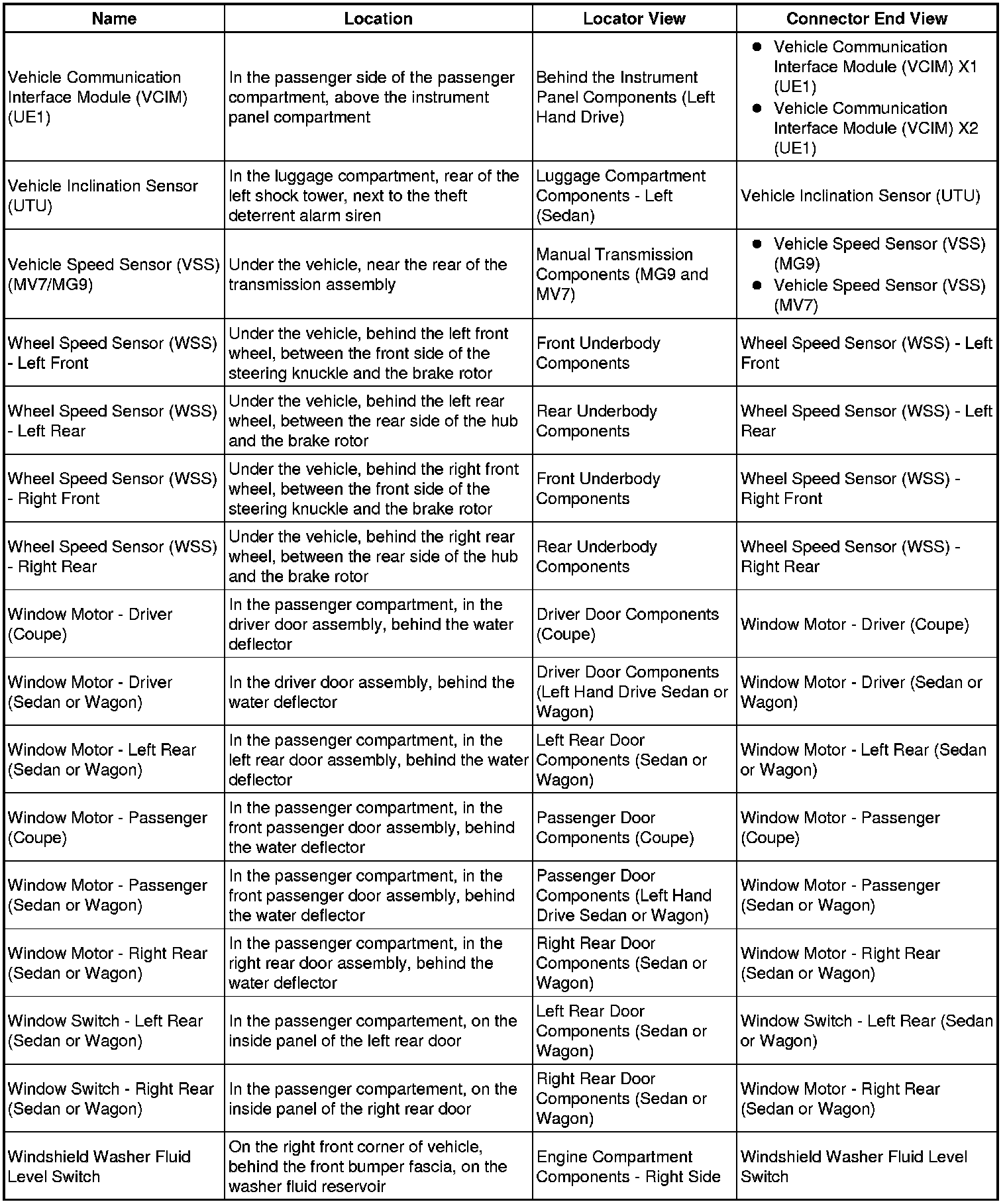 Master Electrical Component List