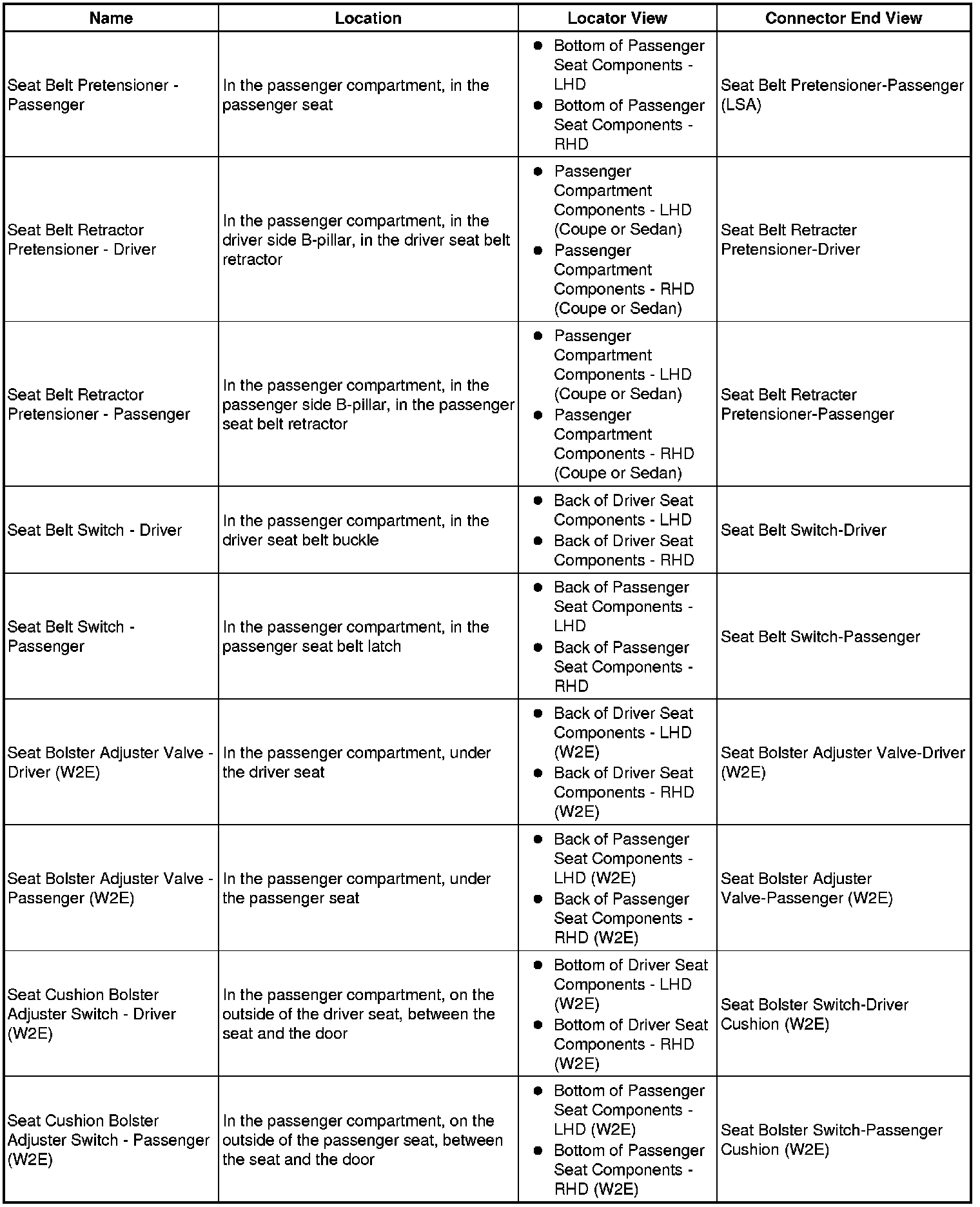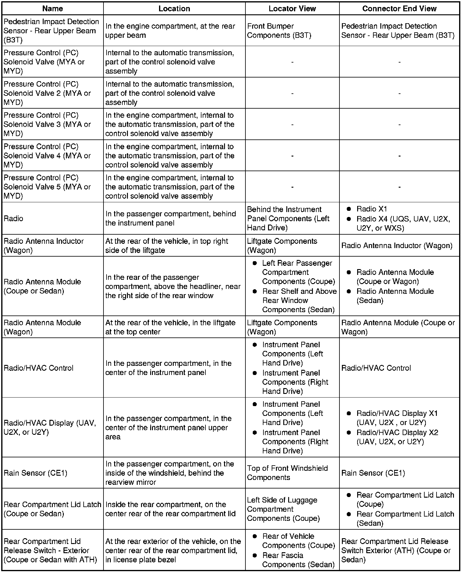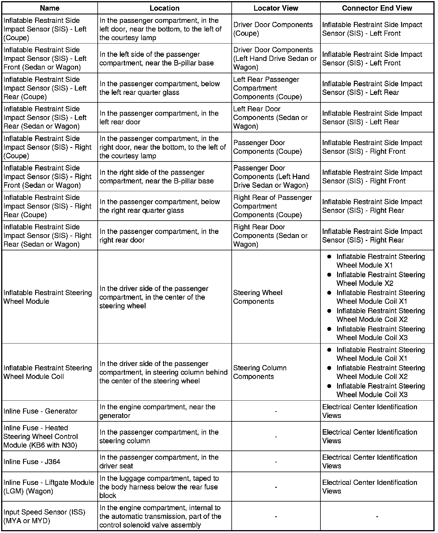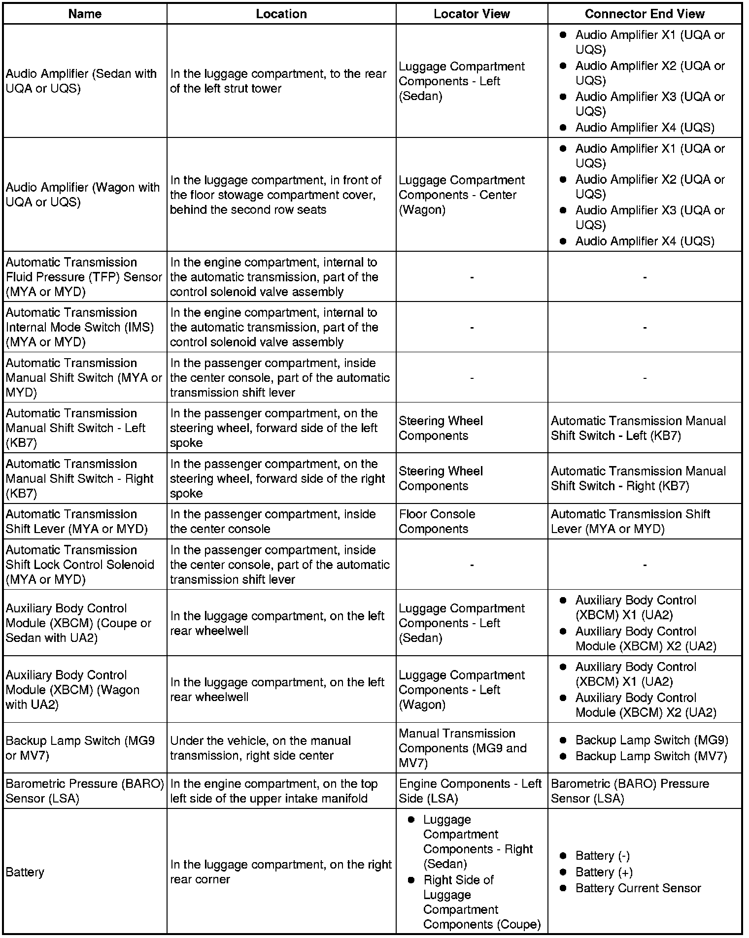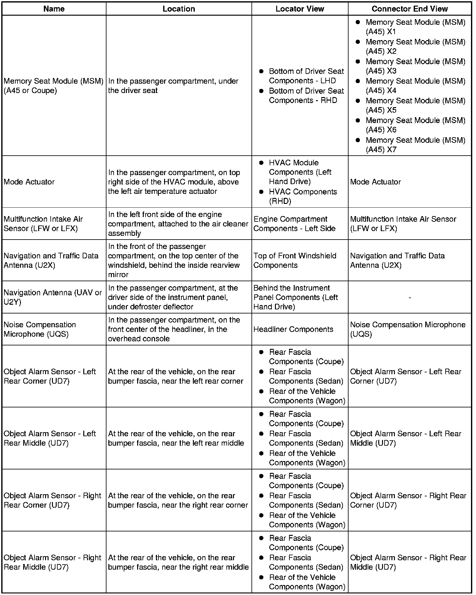 Master Electrical Component List