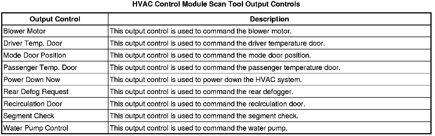 Heating, Ventilation and Air Conditioning Control Module Scan Tool Information