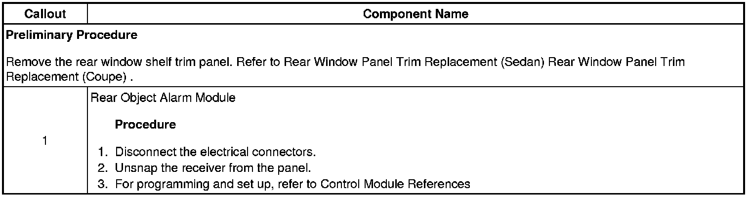 Rear Object Alarm Control Module Replacement (Sedan, Coupe)