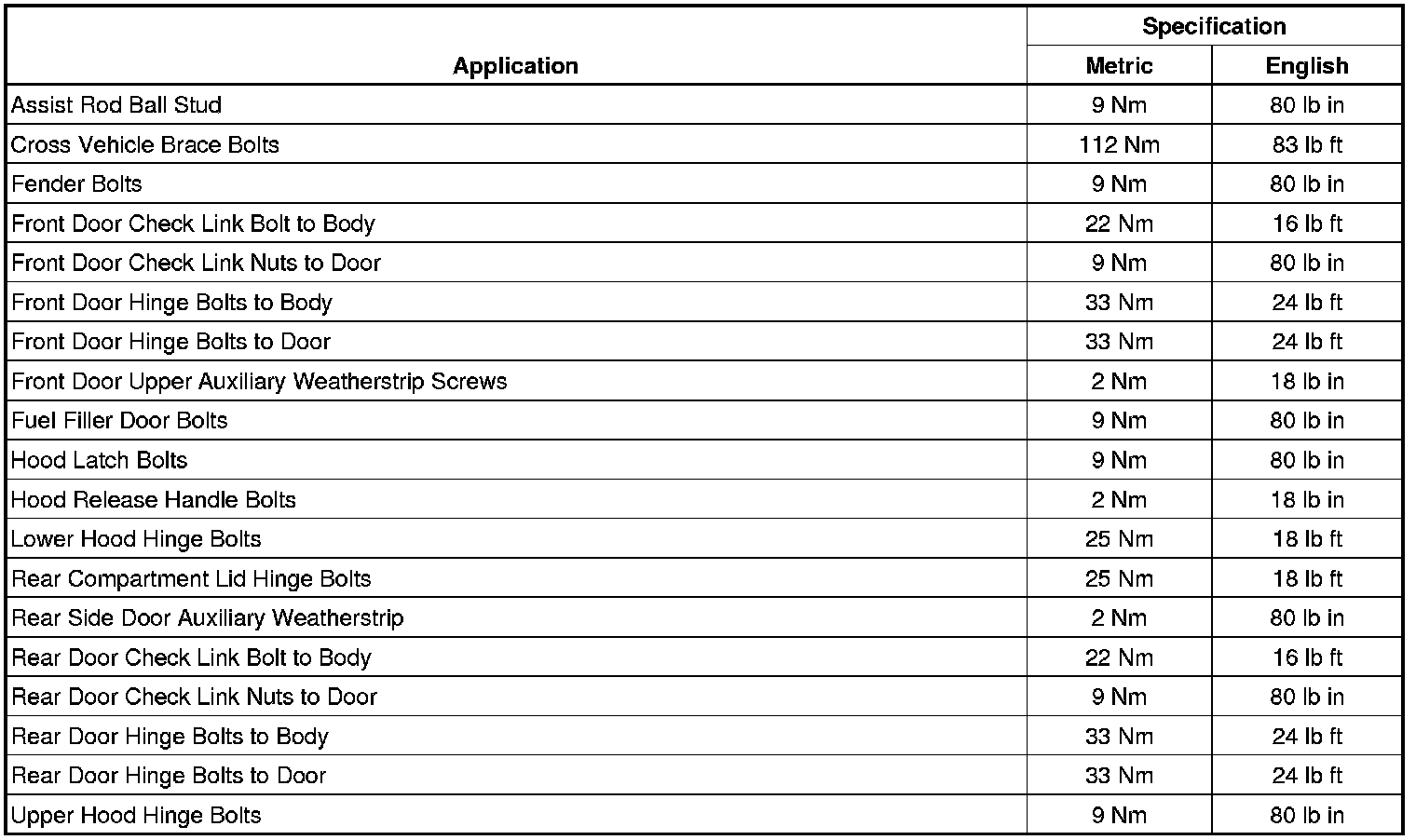 Fastener Tightening Specifications