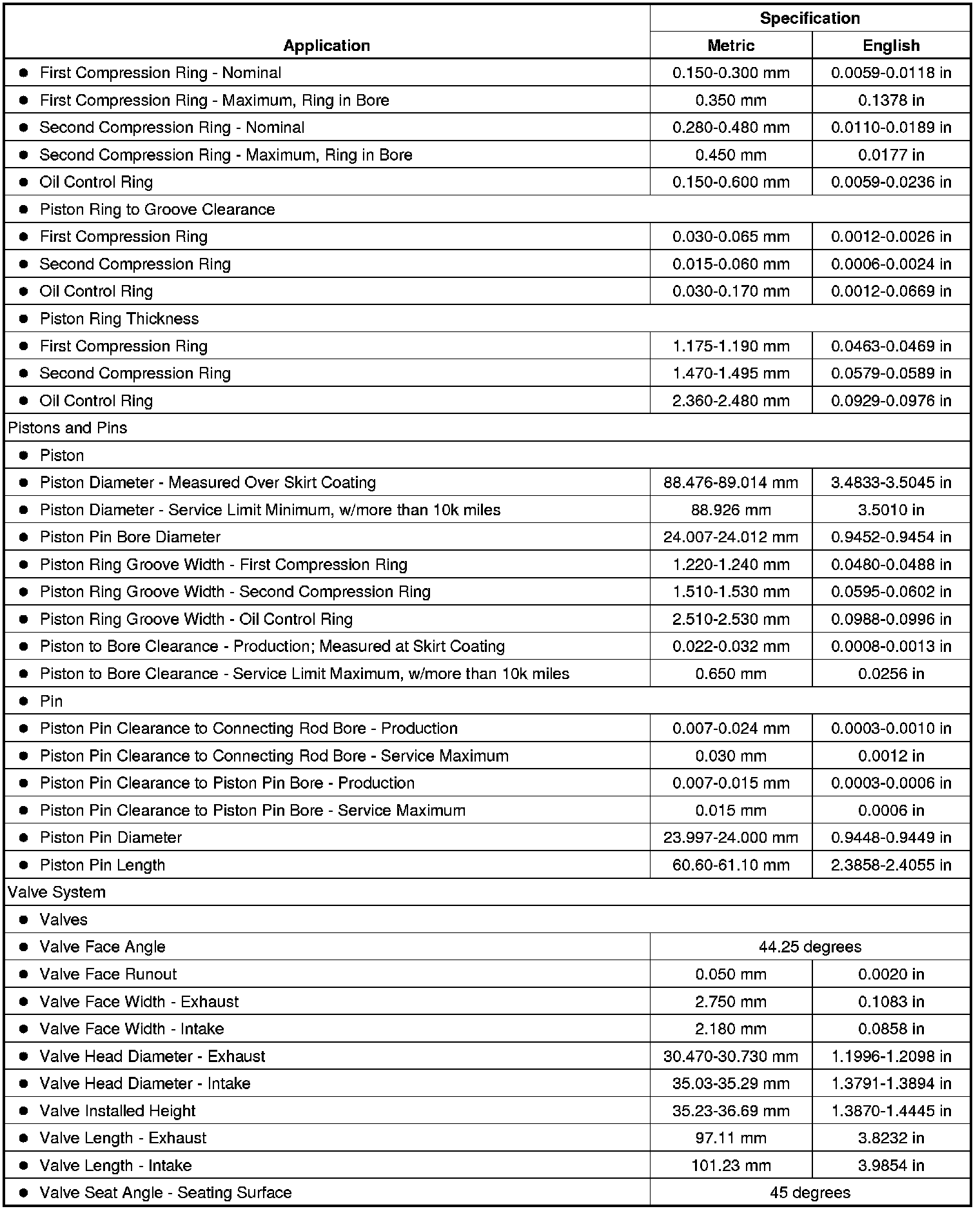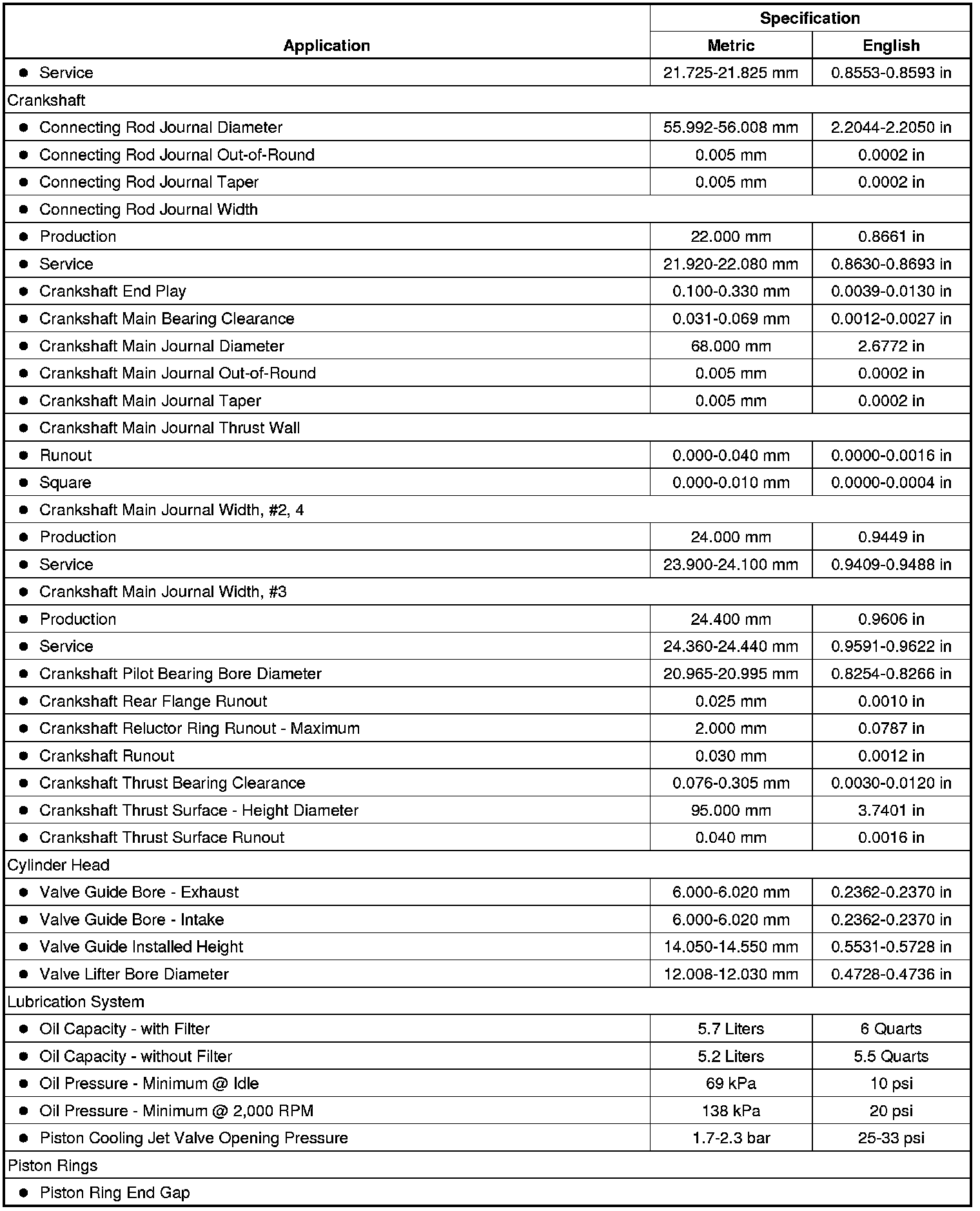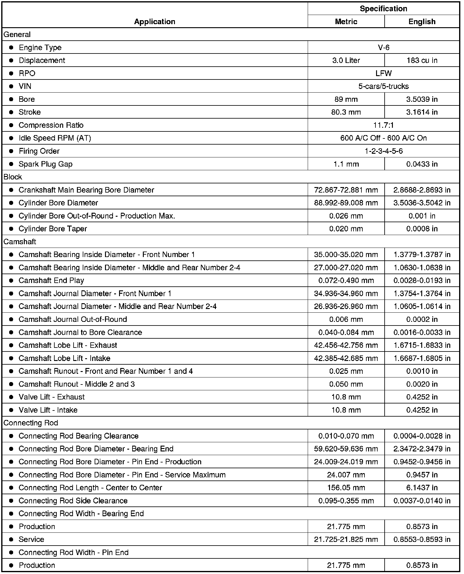 Engine Mechanical Specifications (LFW)