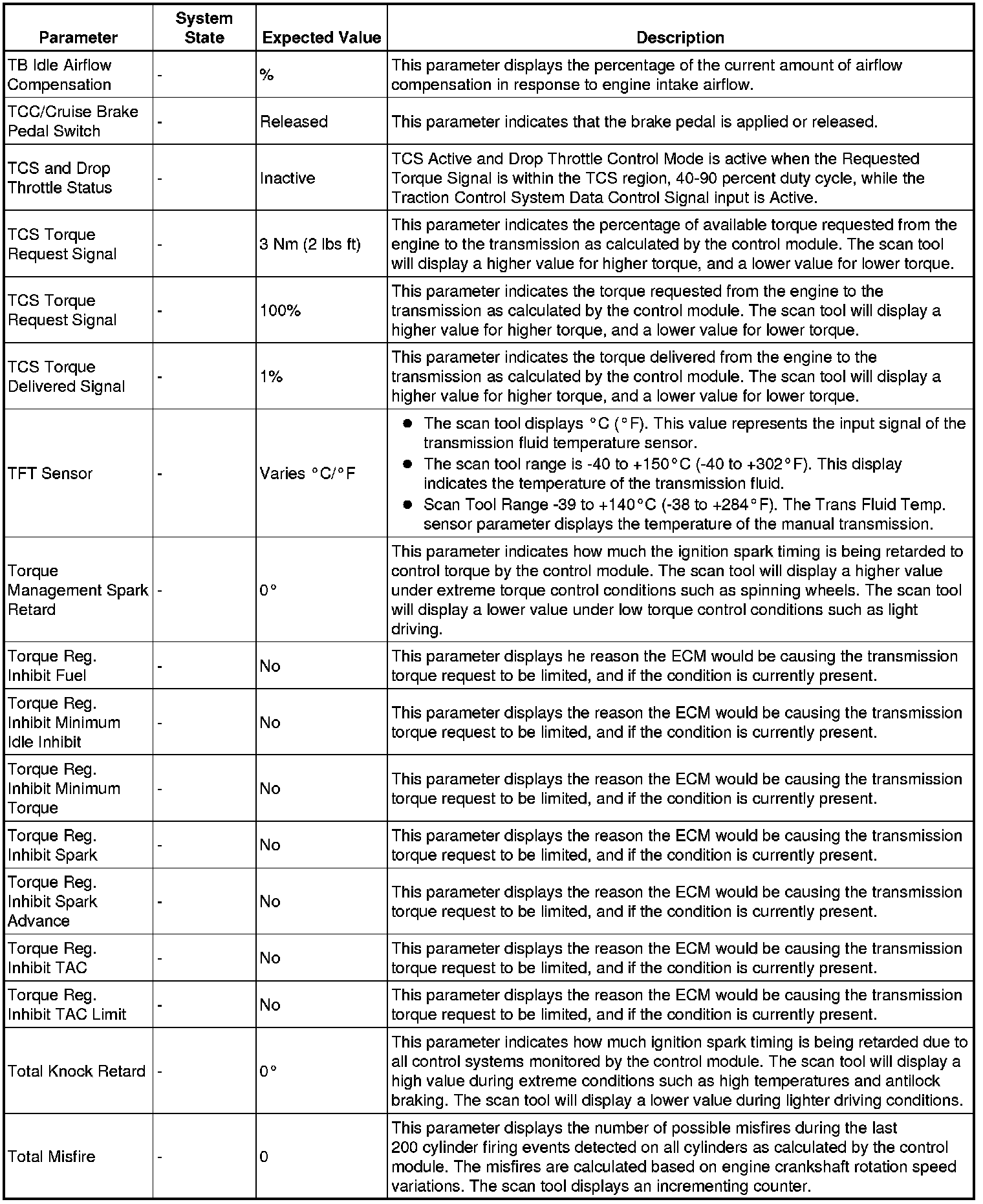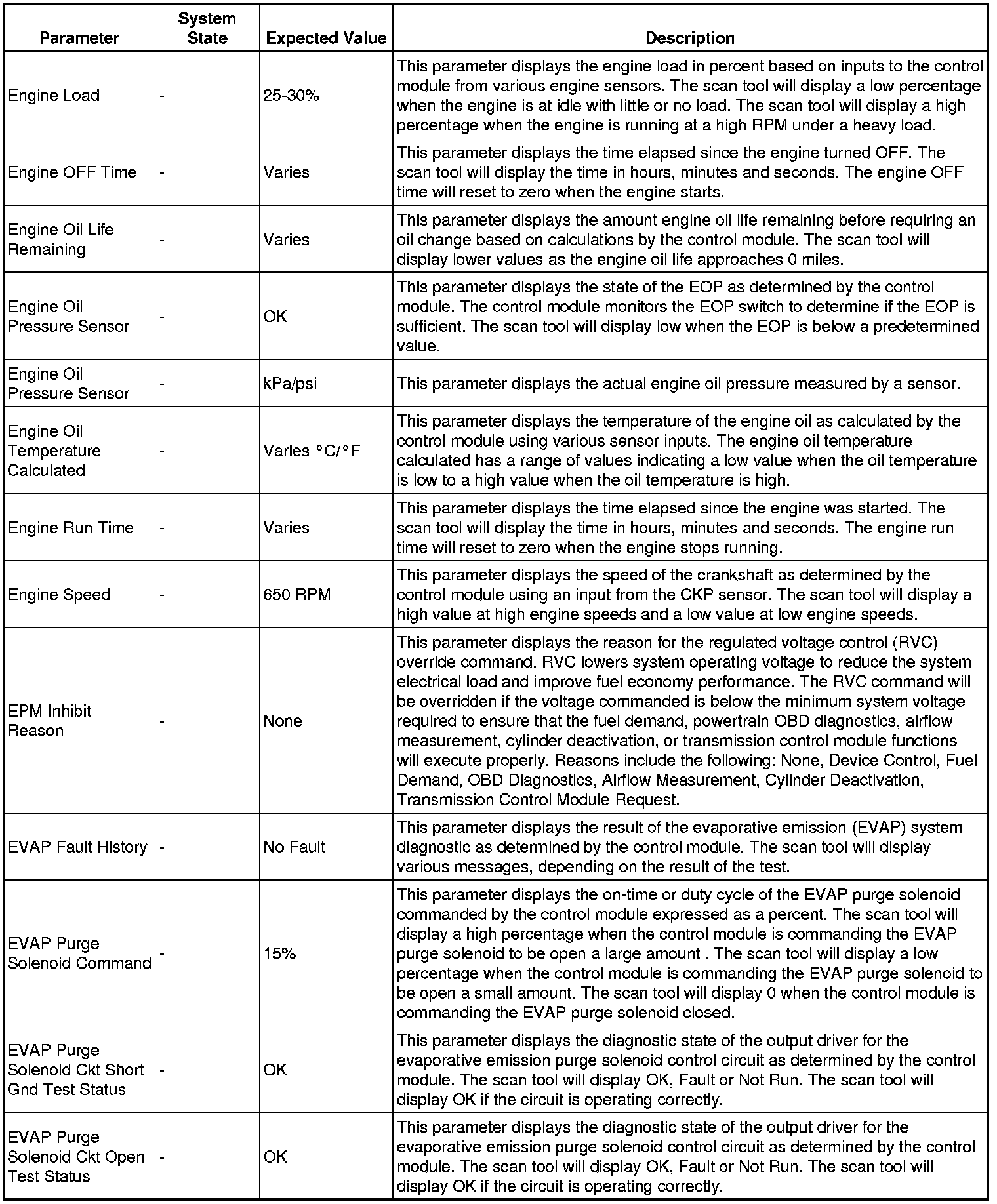 The Engine Control Module Scan Tool Data List contains all engine-related parameters that are available on the scan tool. The list is arranged in alphabetical order. A given parameter may appear in any one of the data lists, and in some cases may appear more than once, or in more than one data list in order to group certain related parameters together.