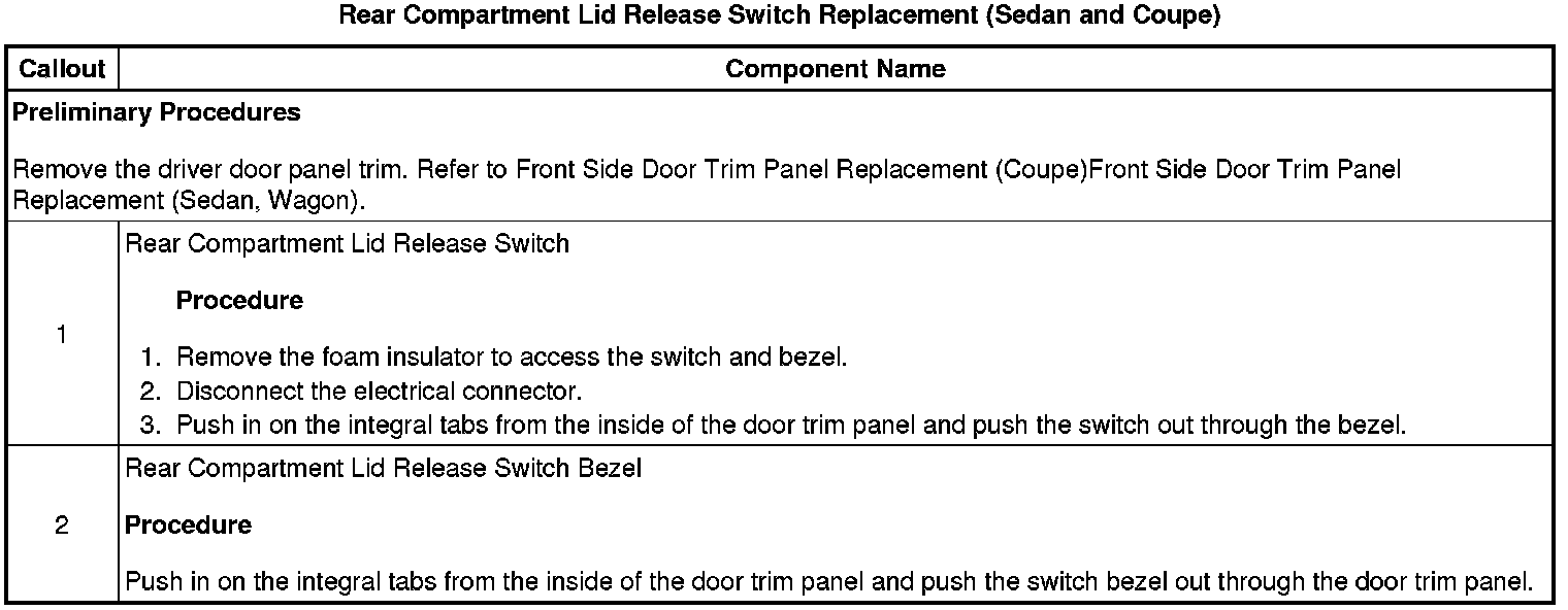 Rear Compartment Lid Release Switch Replacement (Sedan and Coupe)