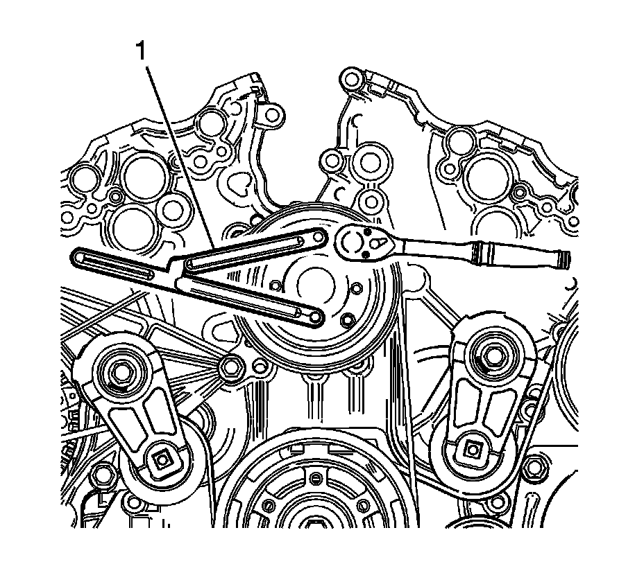3. Use the EN 46104 - water pump pulley holding tool (1) in order to retain the water pump pulley.