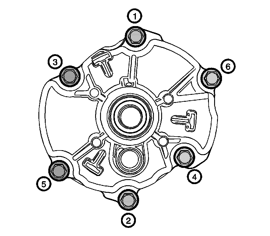 4. Tighten the water pump bolts in sequence.