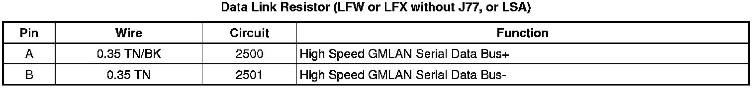 Data Link Resistor (LFW or LFX without J77, or LSA)