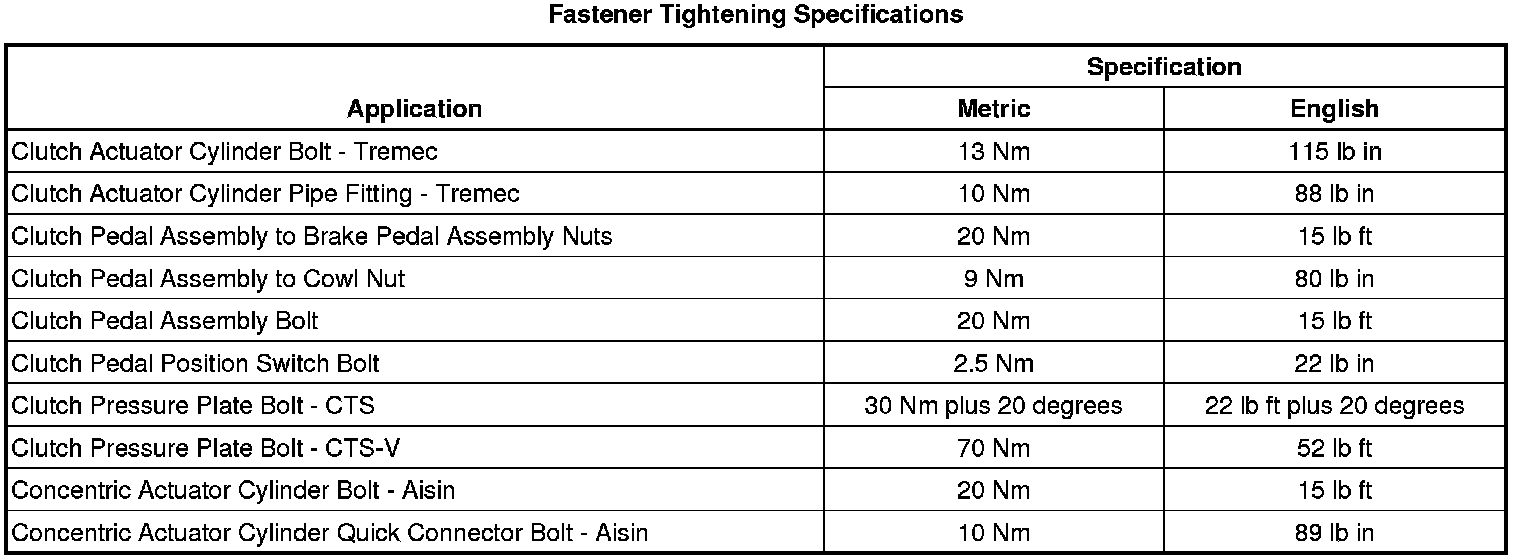 Fastener Tightening Specifications