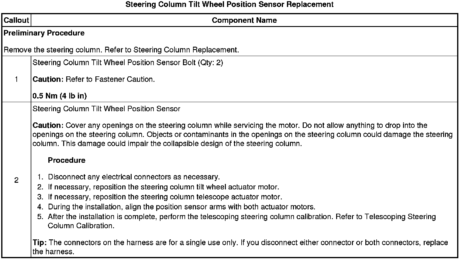 Tilt Wheel Sensor: Service and Repair