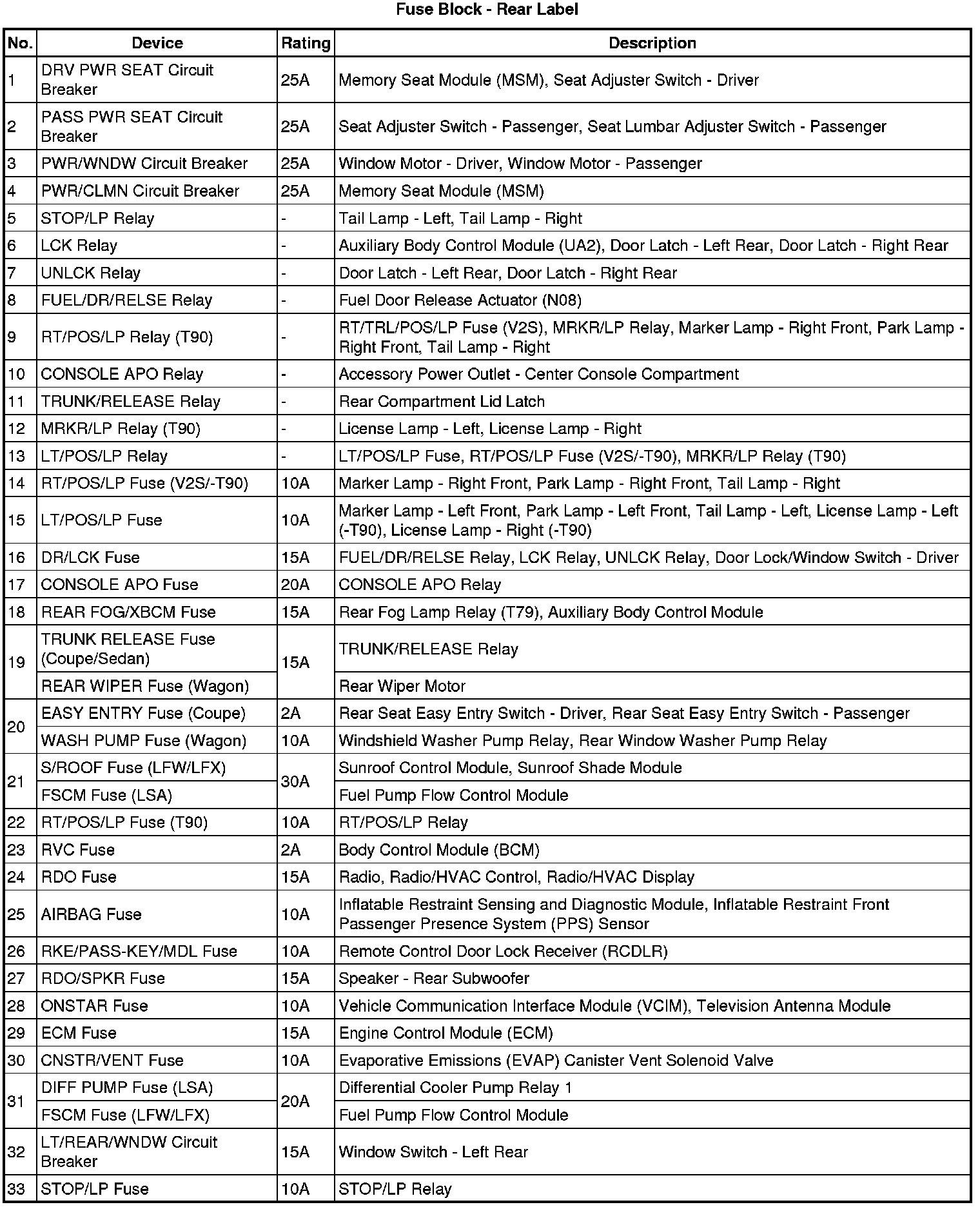 Fuse Block - Rear Label