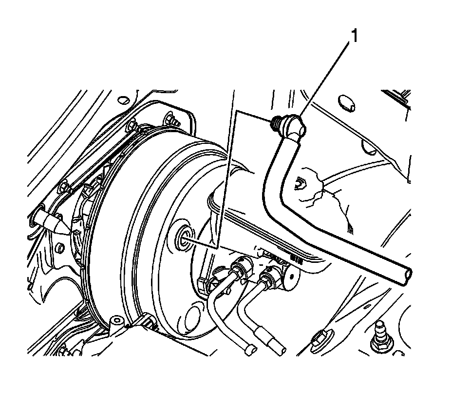 4. Disconnect the vacuum brake booster hose (1) from the vacuum port at the front of the engine intake manifold.