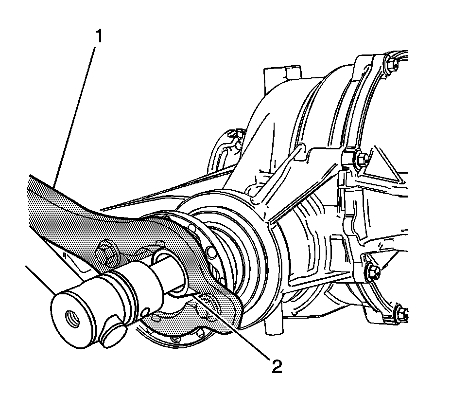 8. Using the J 8614-01 - remover(1) and the J 34826 - socket(2) , tighten the pinion nut to 245 Nm (181 lb ft).