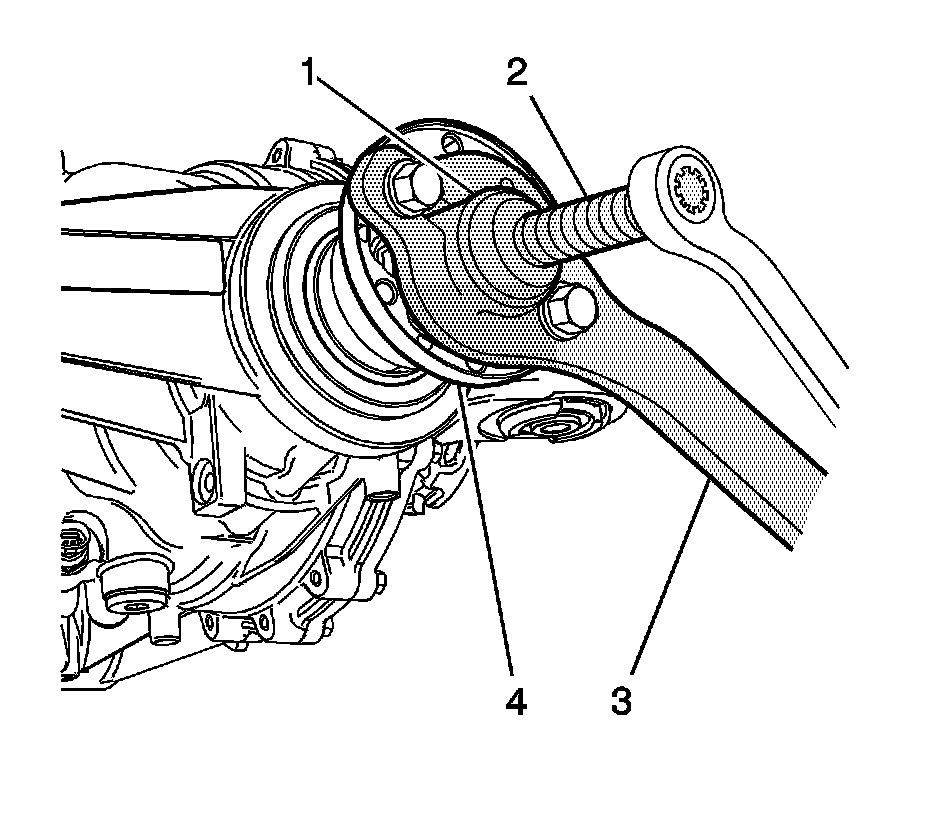 5. Using the J 8614-01 - remover(3), J 8614-2 (1) and the J 8614-3 (3), remove the drive pinion flange (4).