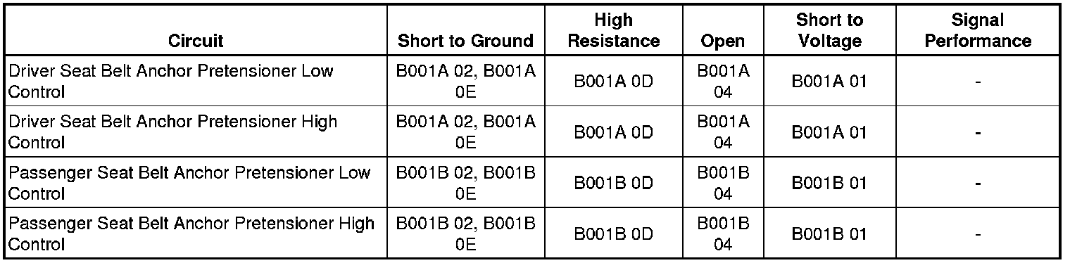 - Driver Seat Belt Anchor Pretensioner Deployment Loop High Resistance