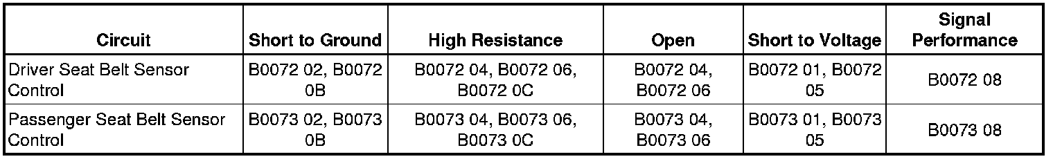 - Passenger Seat Belt Switch Circuit Short to Ground