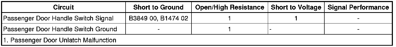 Exterior Passenger Door Handle Switch Circuit Short to Ground