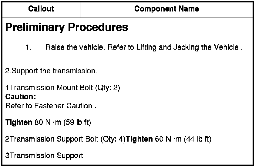 2Transmission Support Bolt (Qty: 4)Tighten 60 N �m (44 lb ft)