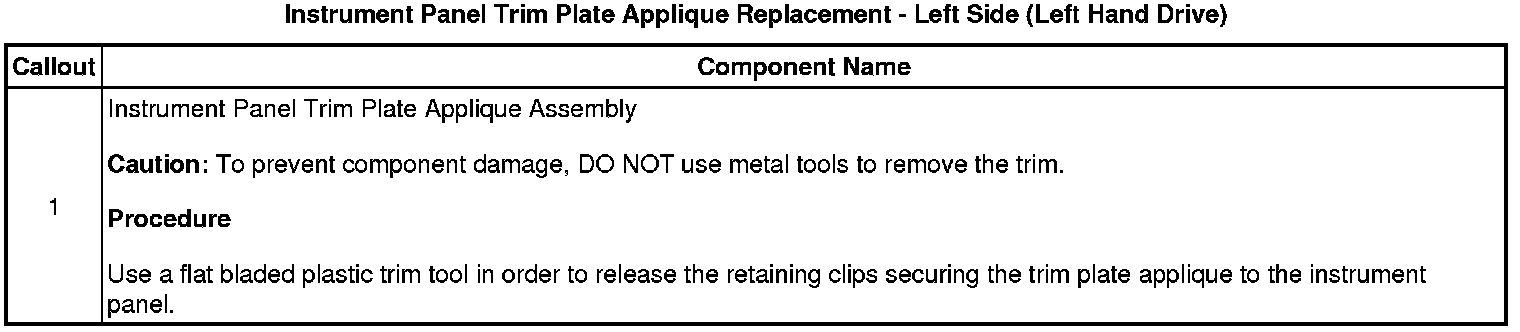 Instrument Panel Trim Plate Applique Replacement - Left Side (Left Hand Drive)