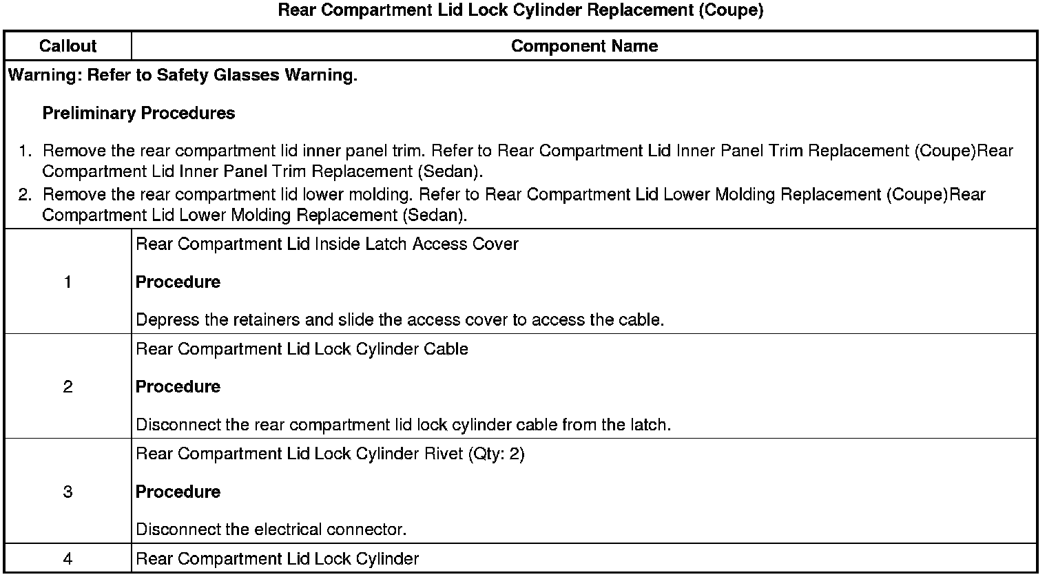 Rear Compartment Lid Lock Cylinder Replacement (Coupe)
