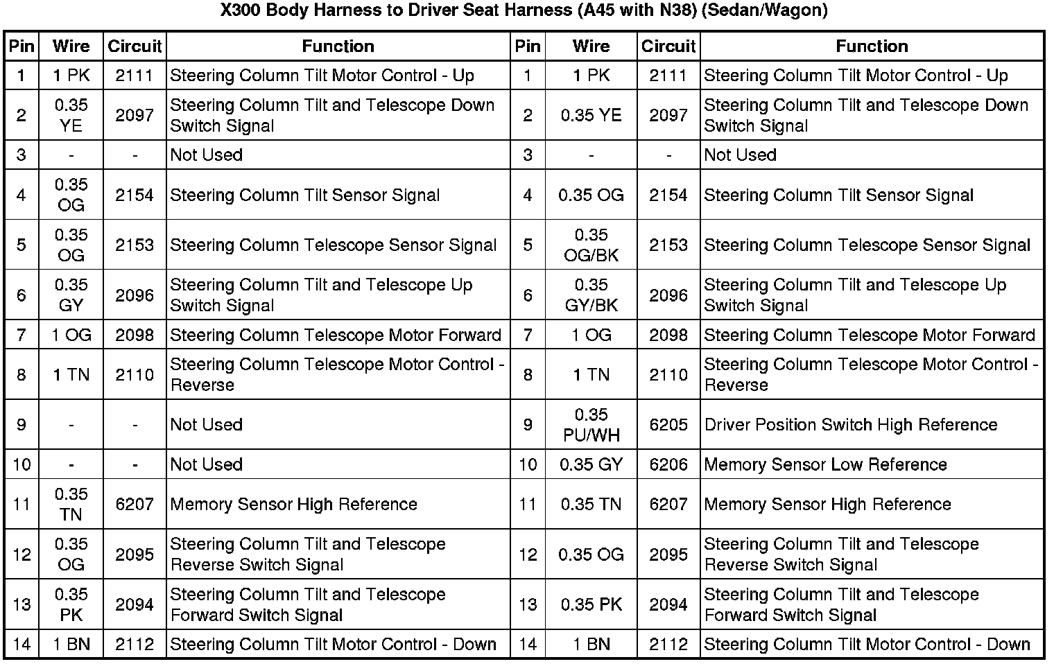 X300 Body Harness to Driver Seat Harness (A45 with N38) (Sedan/Wagon)