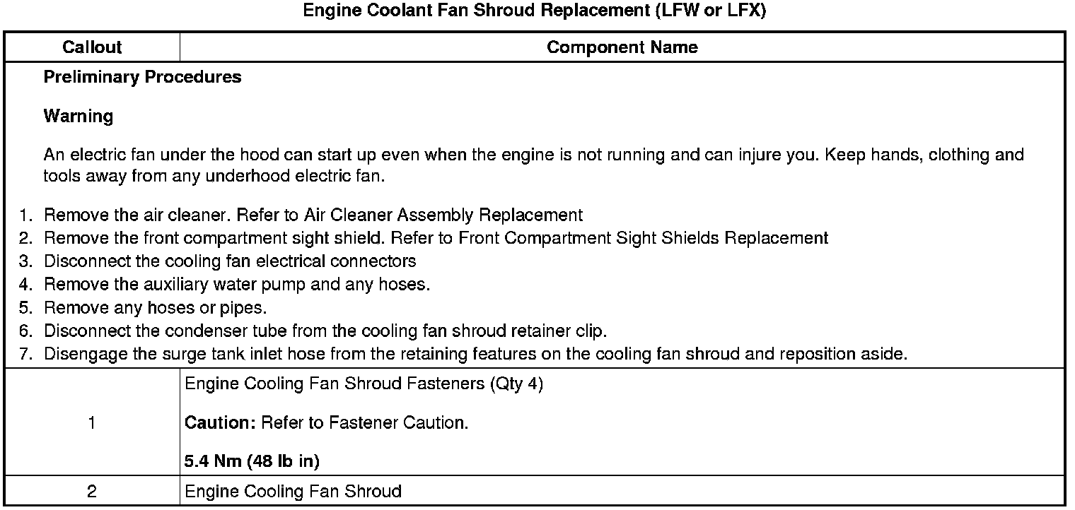 Engine Coolant Fan Shroud Replacement (LFW or LFX)