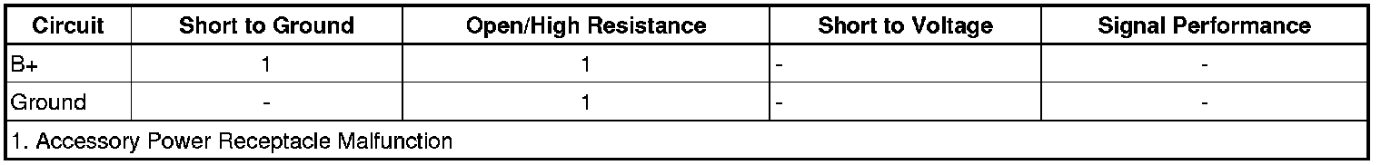 4. If the circuits test normal, test or replace the accessory power receptacle.
