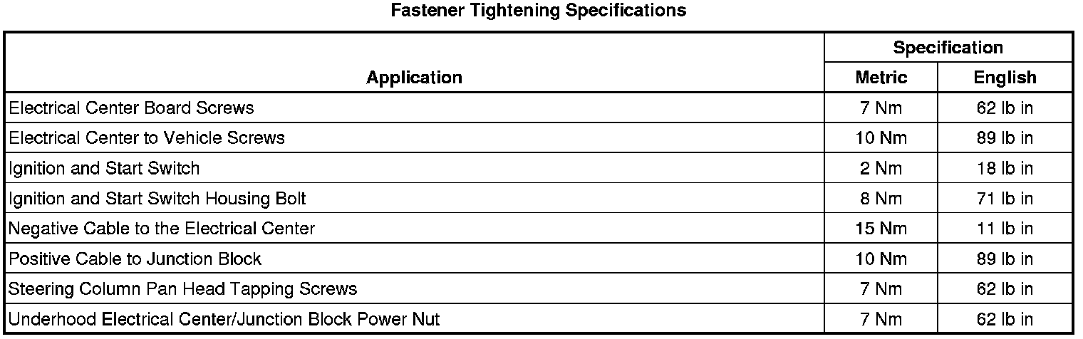 Fastener Tightening Specifications