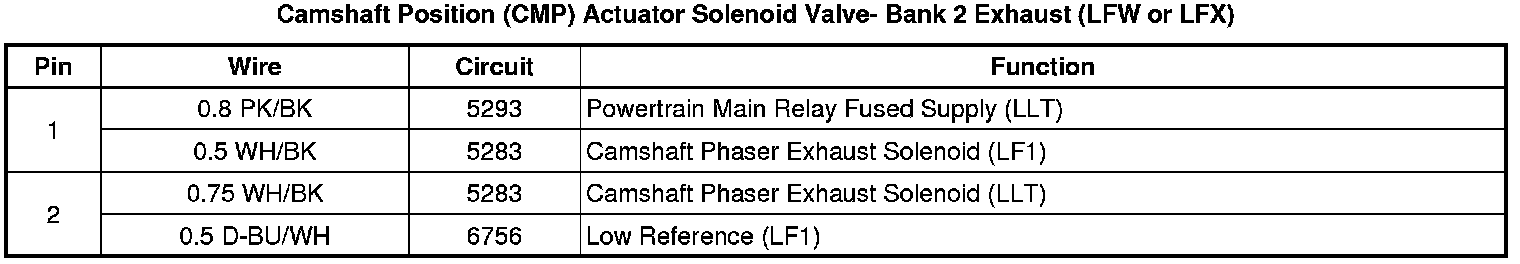 Camshaft Position (CMP) Actuator Solenoid Valve- Bank 2 Exhaust (LFW or LFX)