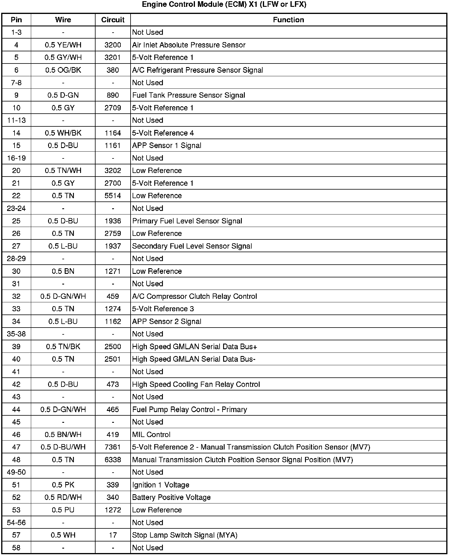 Engine Control Module (ECM) X1 (LFW or LFX)