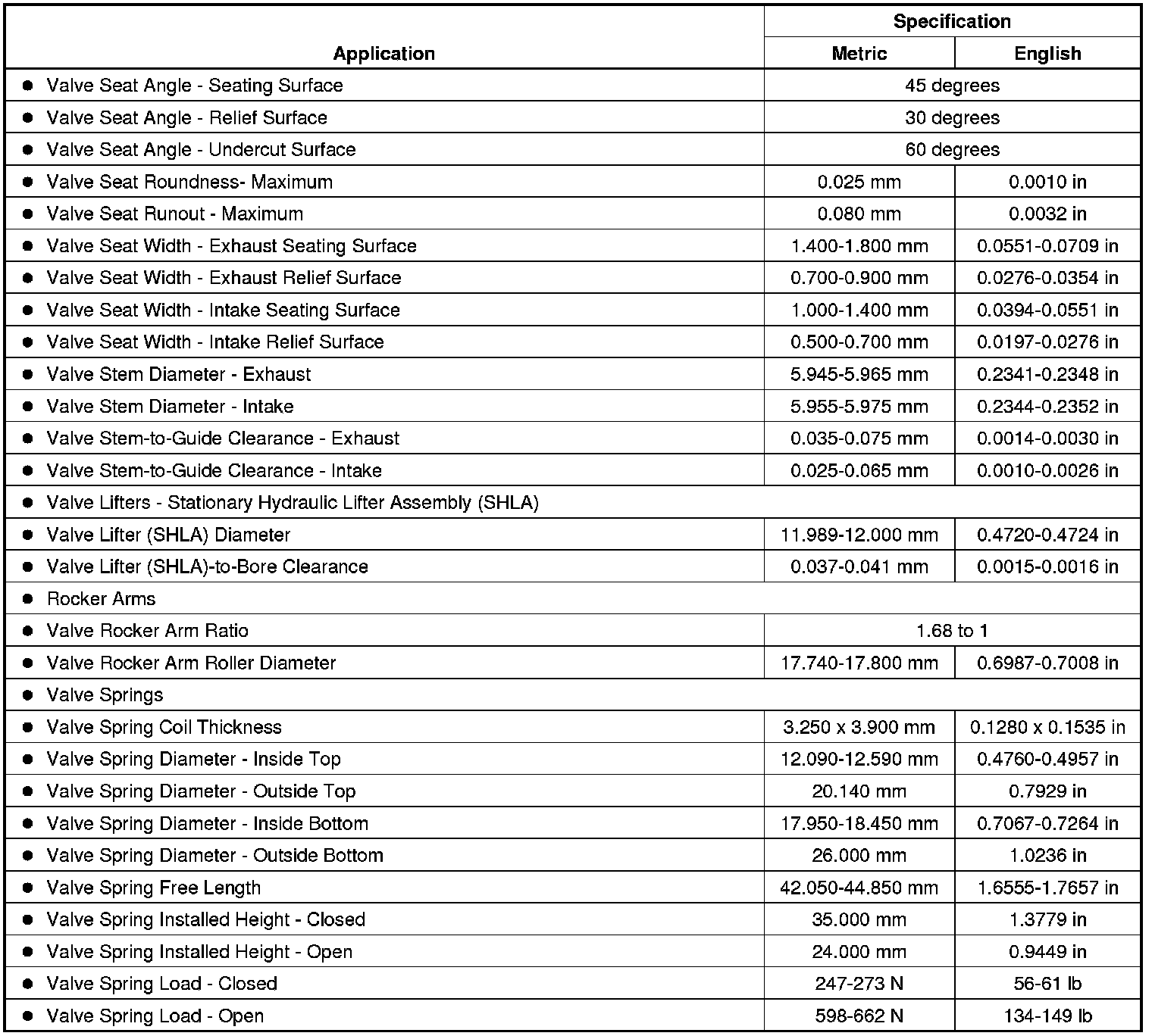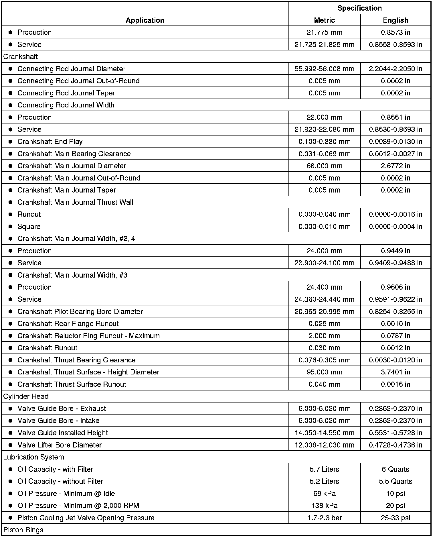 Engine Mechanical Specifications (LFW)