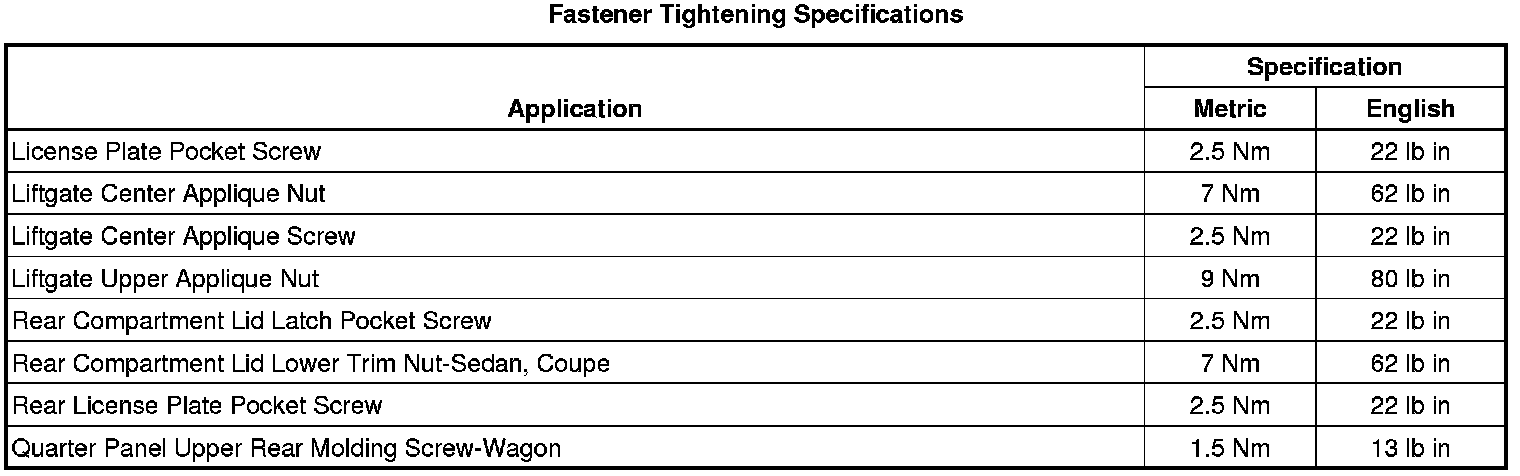 Fastener Tightening Specifications