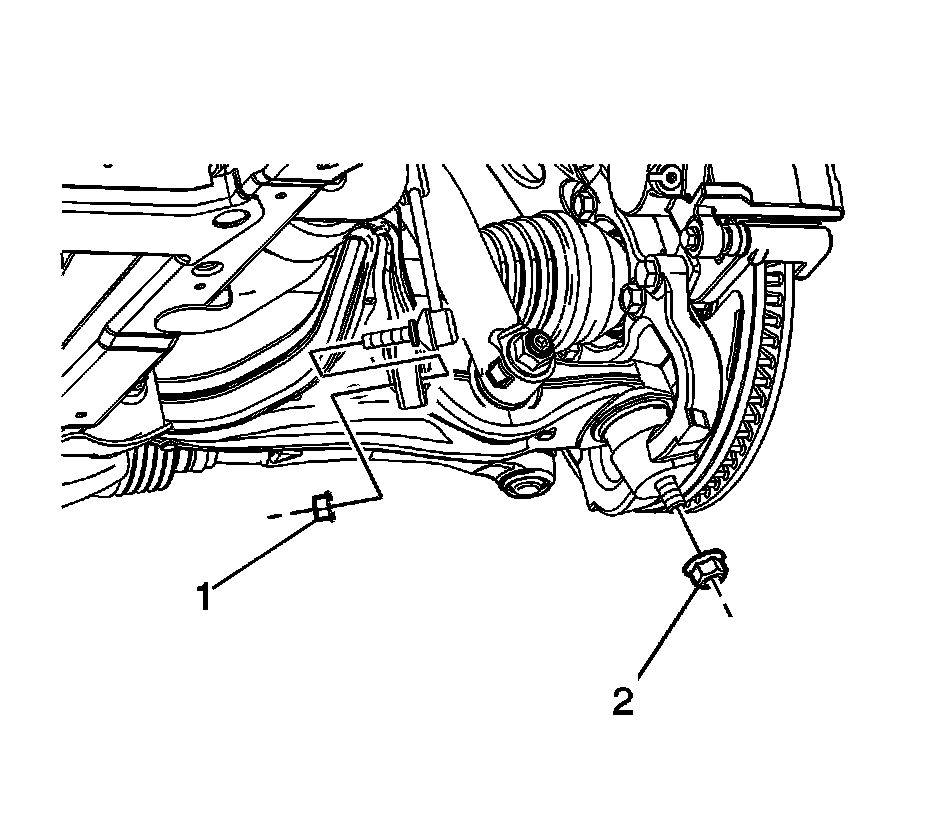 3. Remove the wheel speed sensor. Refer to Front Wheel Speed Sensor Replacement (AWD) Front Wheel Speed Sensor Replacement (AWD)Front Wheel Speed Sensor Replacement (RWD) Front Wheel Speed Sensor Replacement (RWD).
