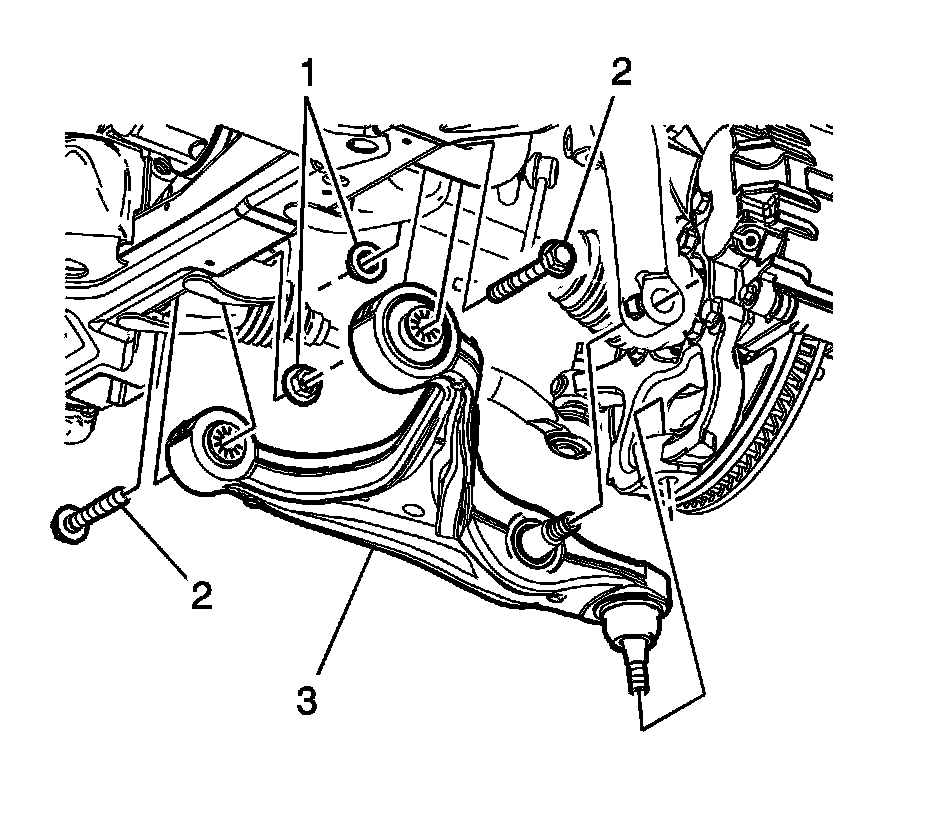 12. Remove the lower control arm (3) from the vehicle.