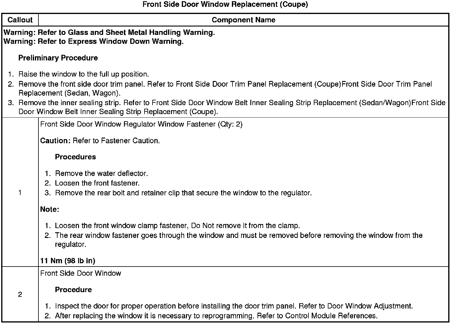 Front Side Door Window Replacement (Coupe)