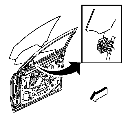 2. Remove the door trim panel. Refer to Front Side Door Trim Panel Replacement (Coupe) Front Side Door Trim Panel Replacement (Coupe)Front Side Door Trim Panel Replacement (Sedan, Wagon) Front Side Door Trim Panel Replacement (Sedan, Wagon).