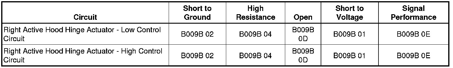 Right Active Hood Hinge Actuator Deployment Loop Short to Ground