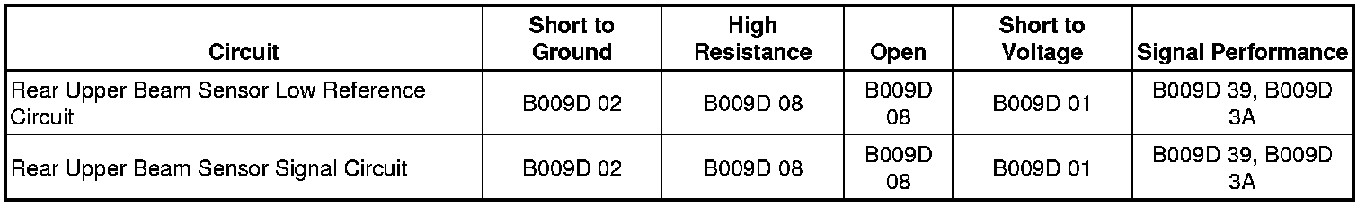 • If greater than the specified value, test the circuit for an open/high resistance. If the circuit tests normal, replace the rear upper beam sensor.