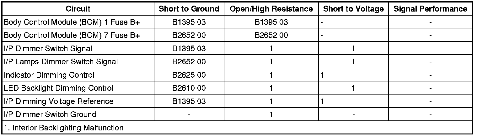 The BCM will not dim or illuminate any indicators supplied by the LED backlight dimming control circuit.