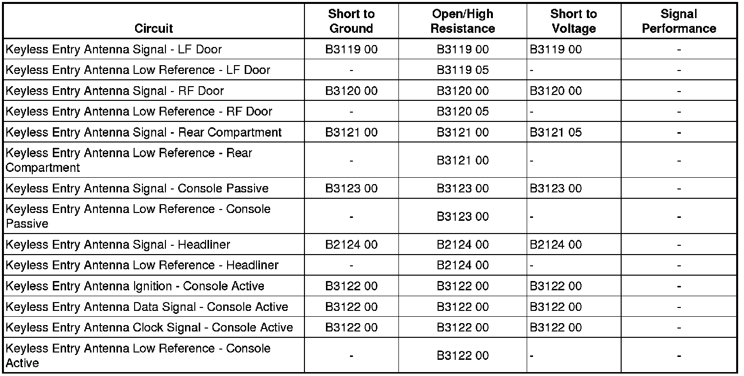 An improper current level is seen on the keyless entry antenna - signal (2) circuit.