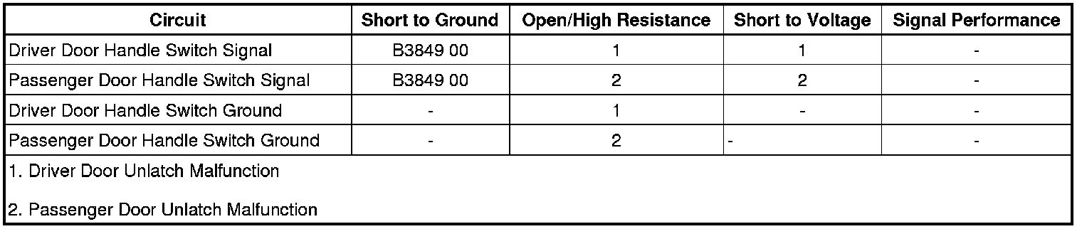 If the passenger door does not open, refer to Passenger Door Handle Switch Malfunction