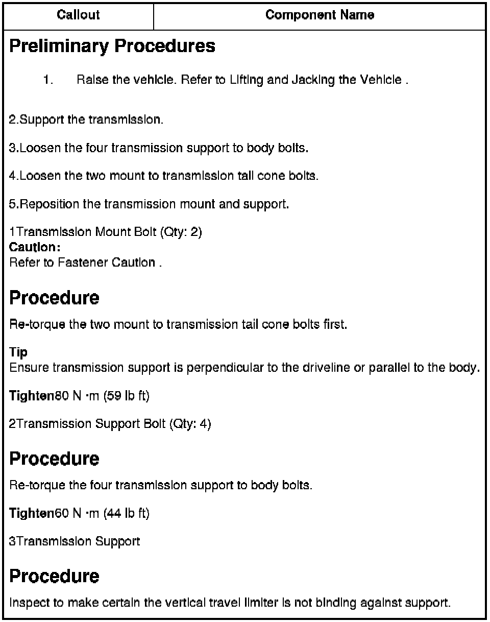 Tip Ensure transmission support is perpendicular to the driveline or parallel to the body.