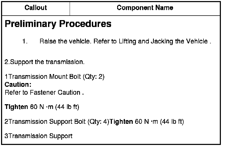 2 Transmission Support Bolt (Qty: 4)Tighten 60 N �m (44 lb ft)