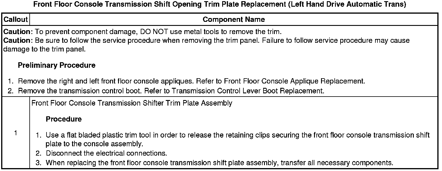 Front Floor Console Transmission Shift Opening Trim Plate Replacement (Left Hand Drive Automatic Trans)