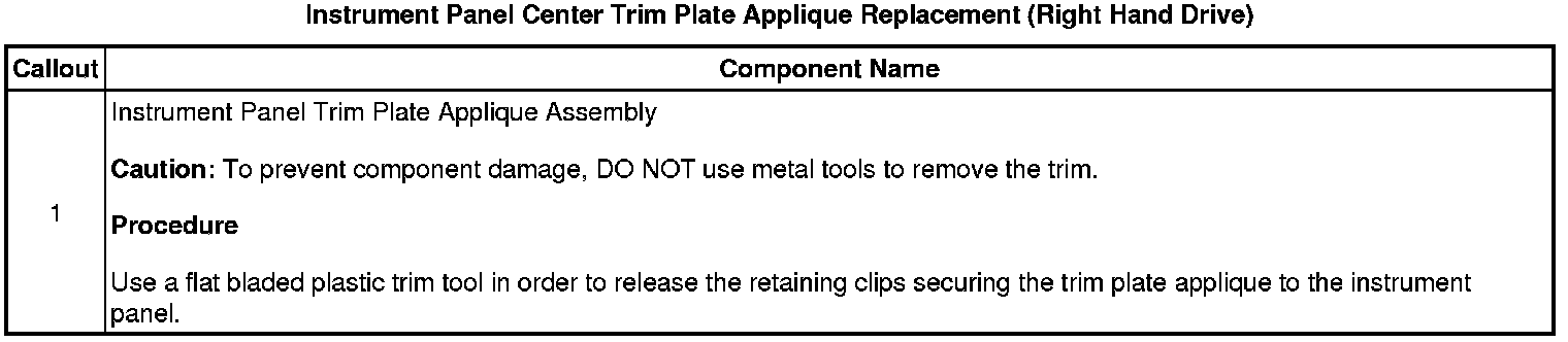 Instrument Panel Center Trim Plate Applique Replacement (Right Hand Drive)