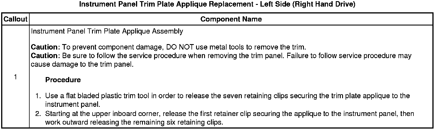 Instrument Panel Trim Plate Applique Replacement - Left Side (Right Hand Drive)
