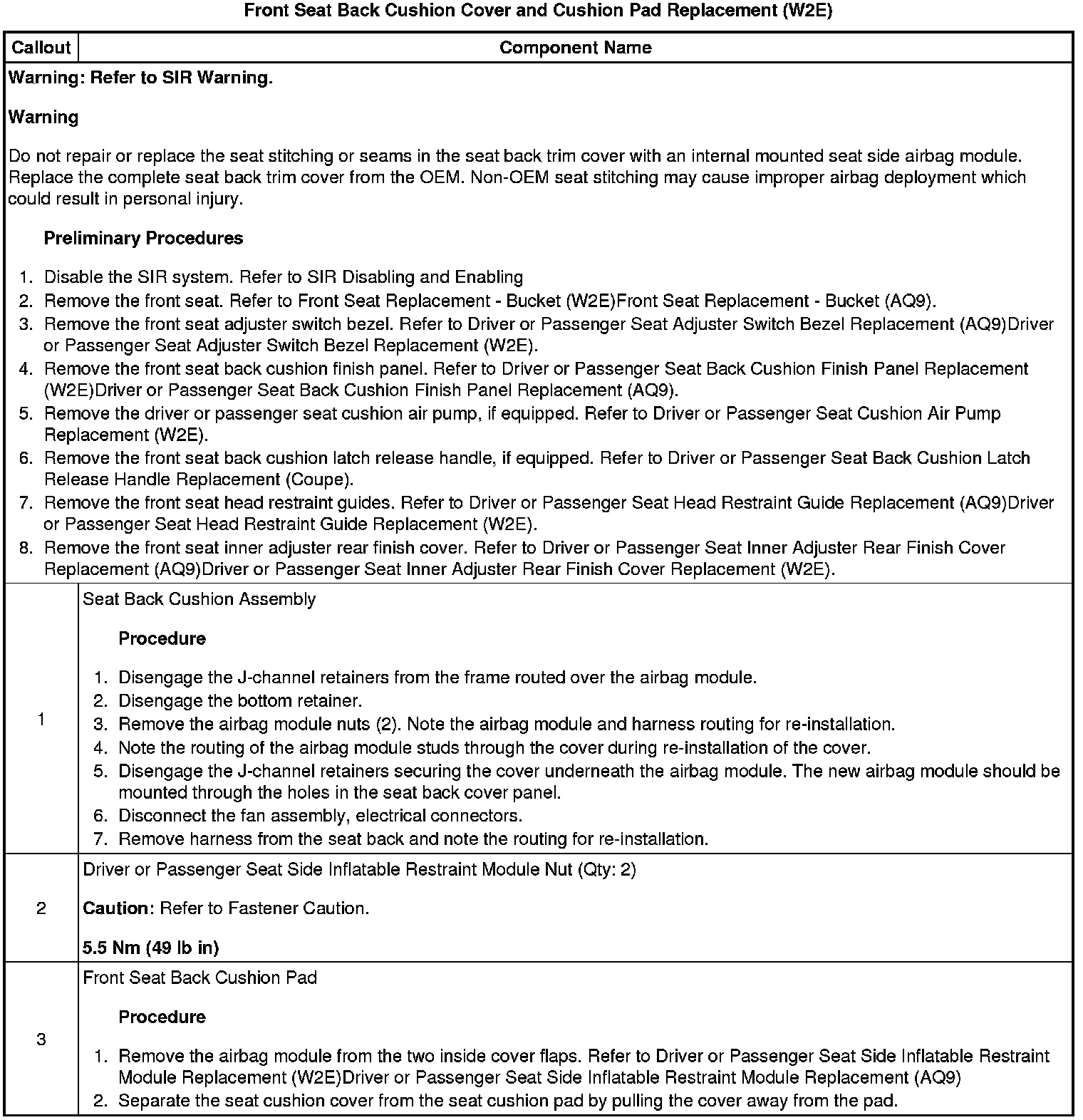 Front Seat Back Cushion Cover and Cushion Pad Replacement (W2E)